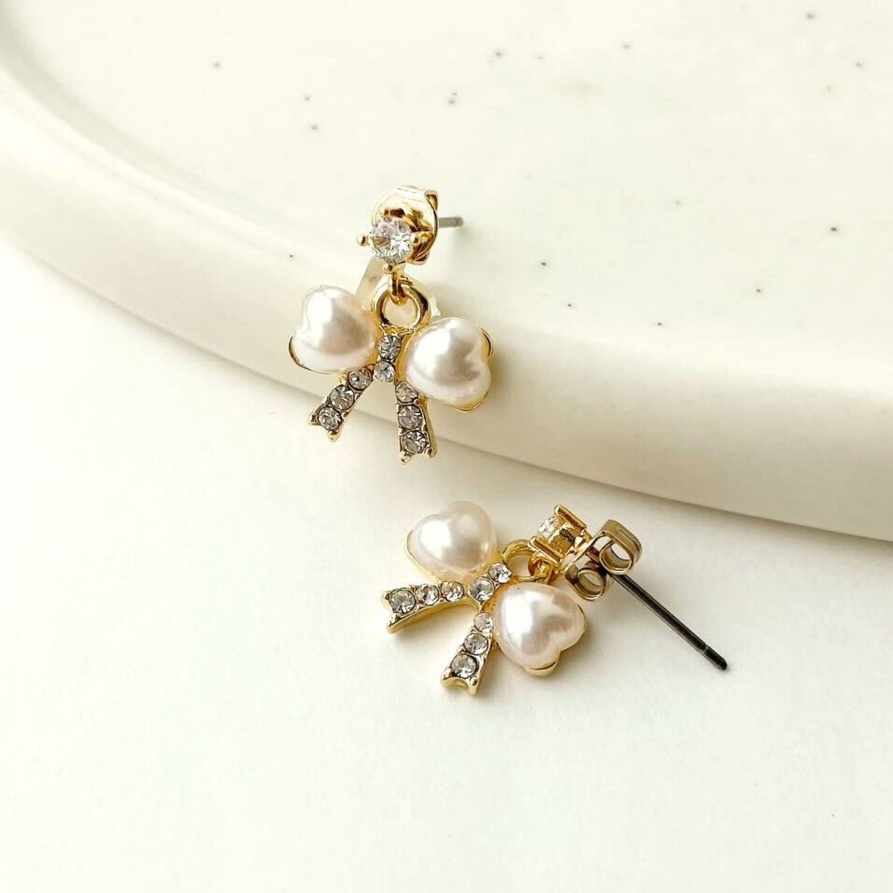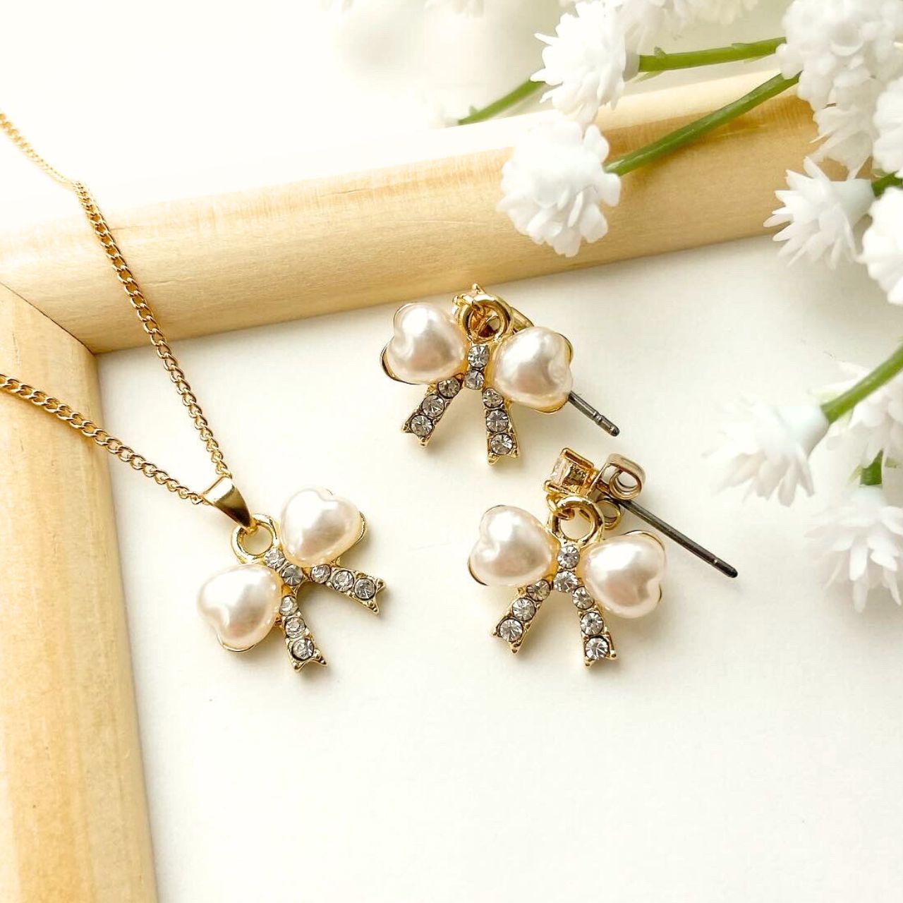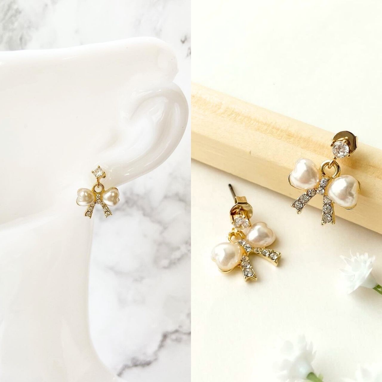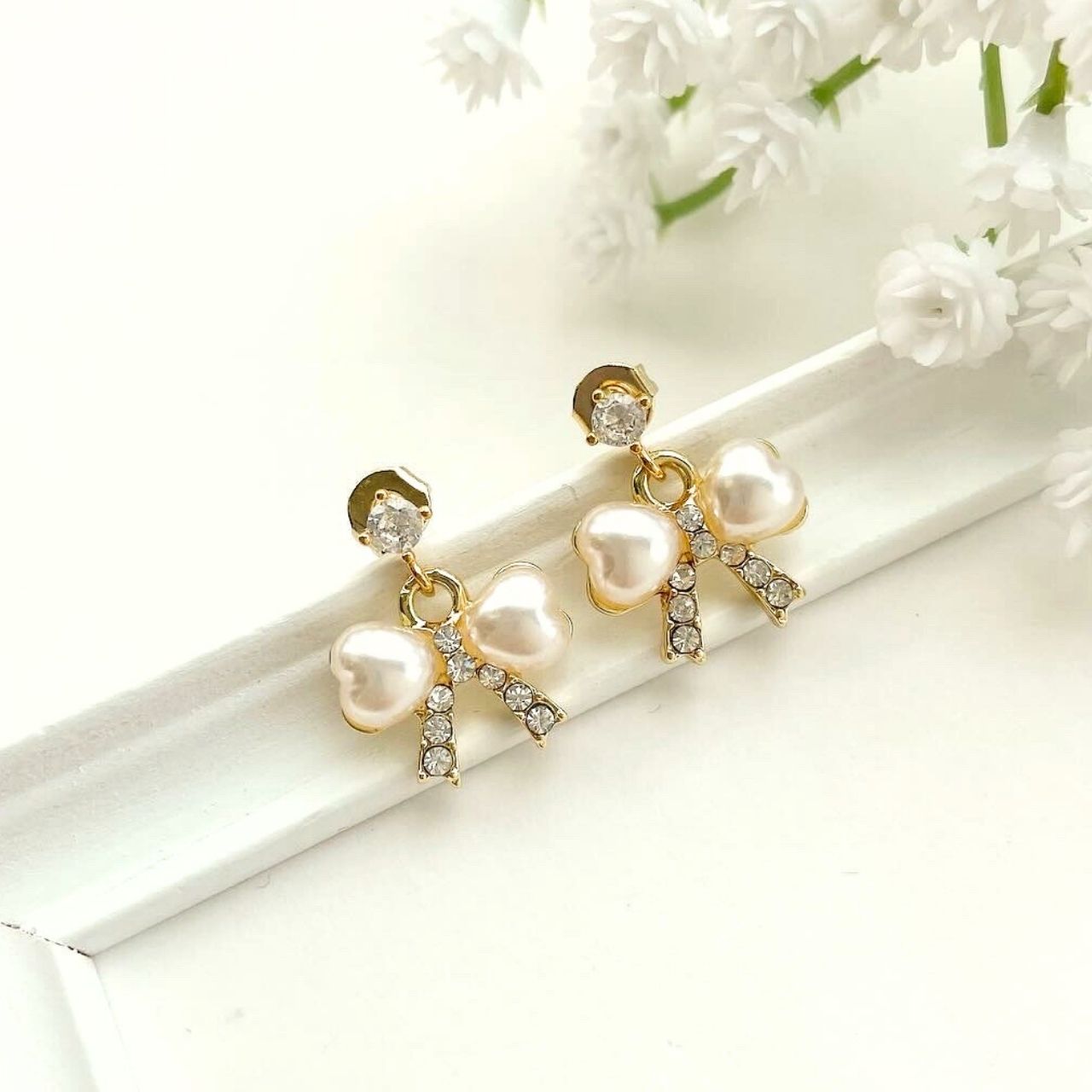 リボンモチーフのパールが優雅に揺れ、女性らしい柔らかさと気品を演出。