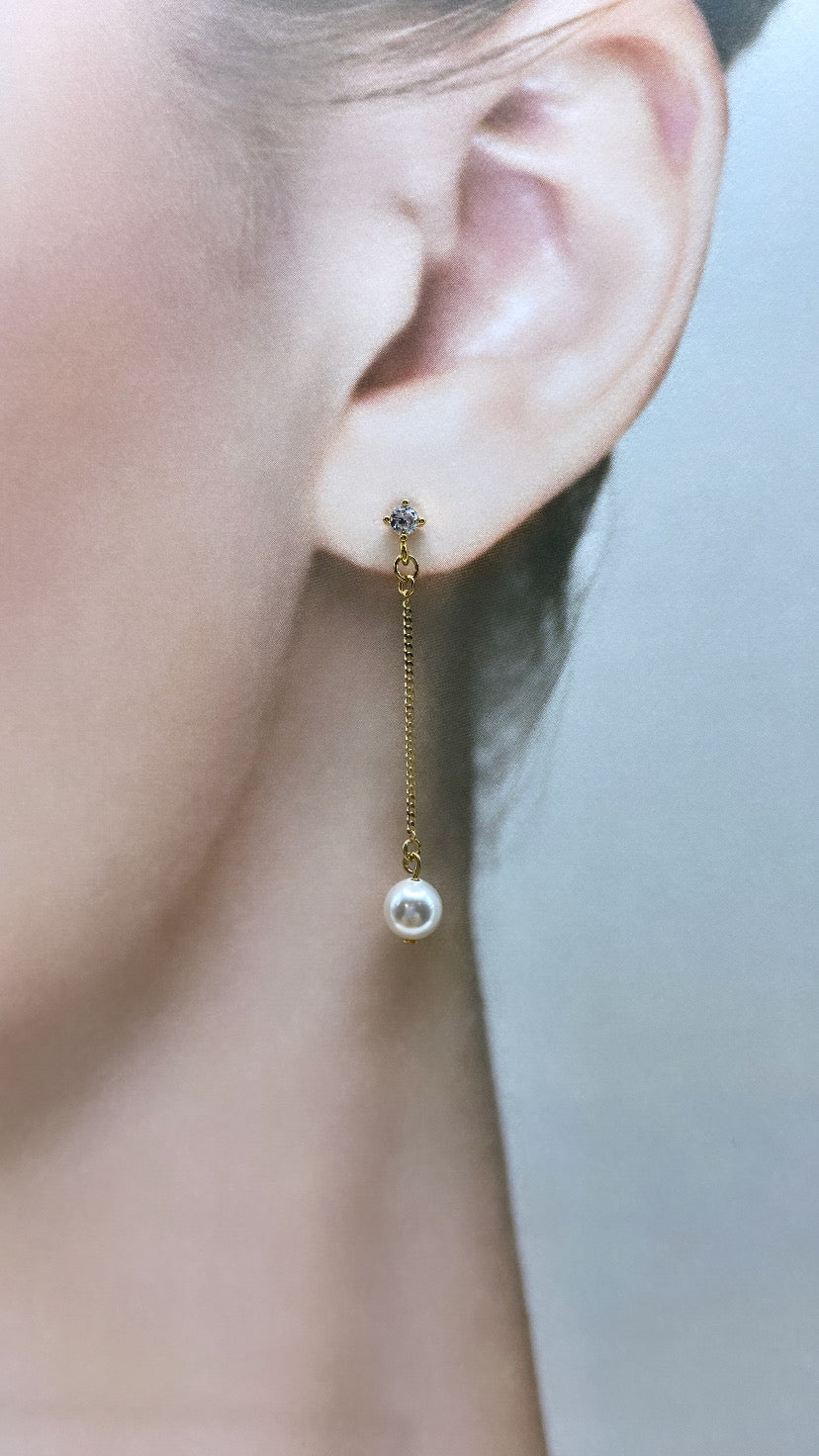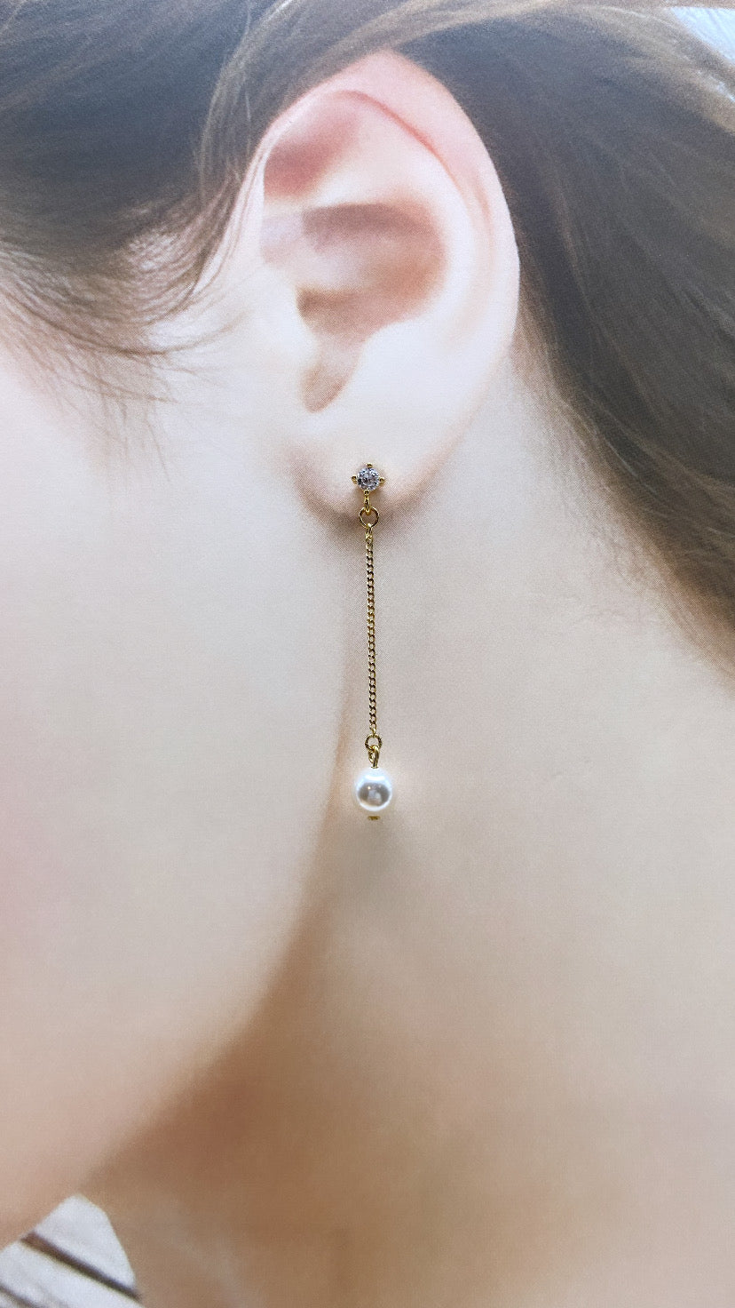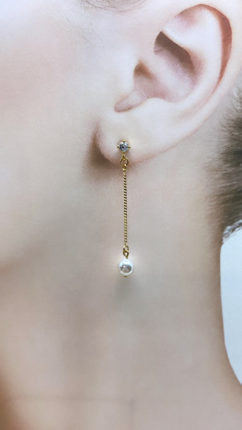 6mm 진주 골드 지르코니아 귀걸이 # 84