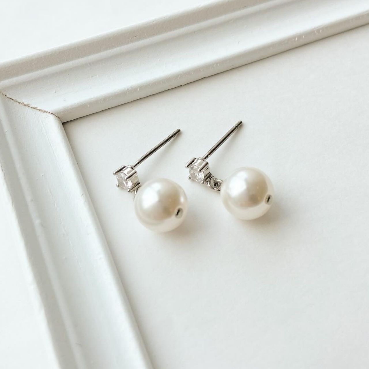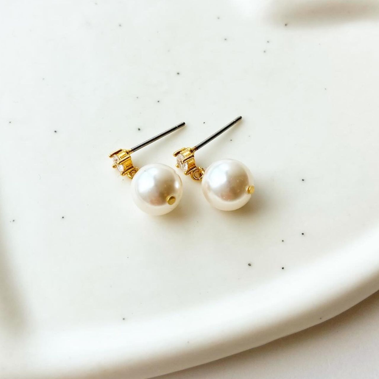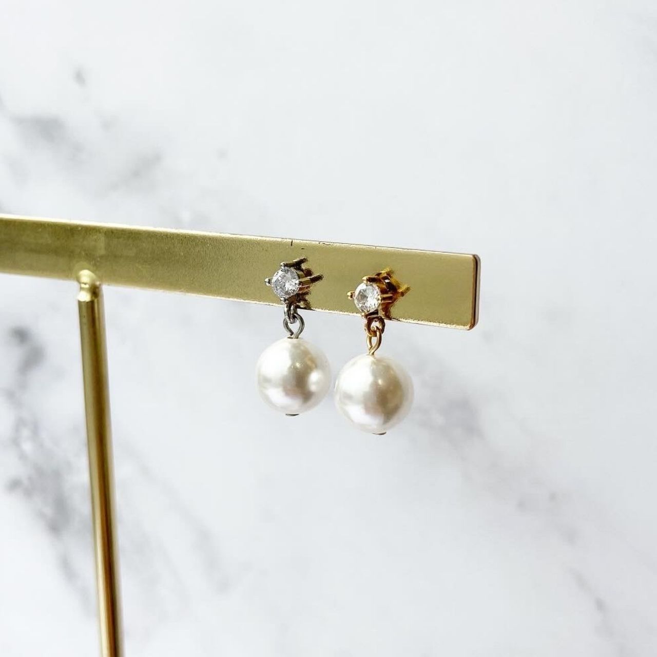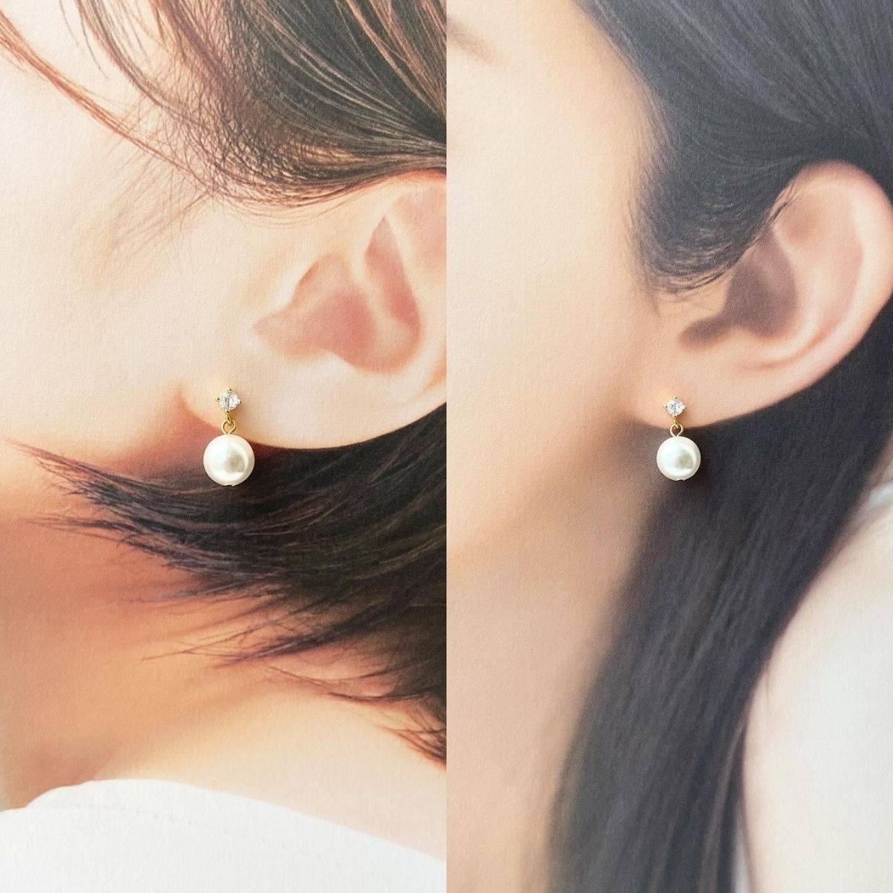 パールにジルコニアをプチっと可愛らしく上品につけたピアスです