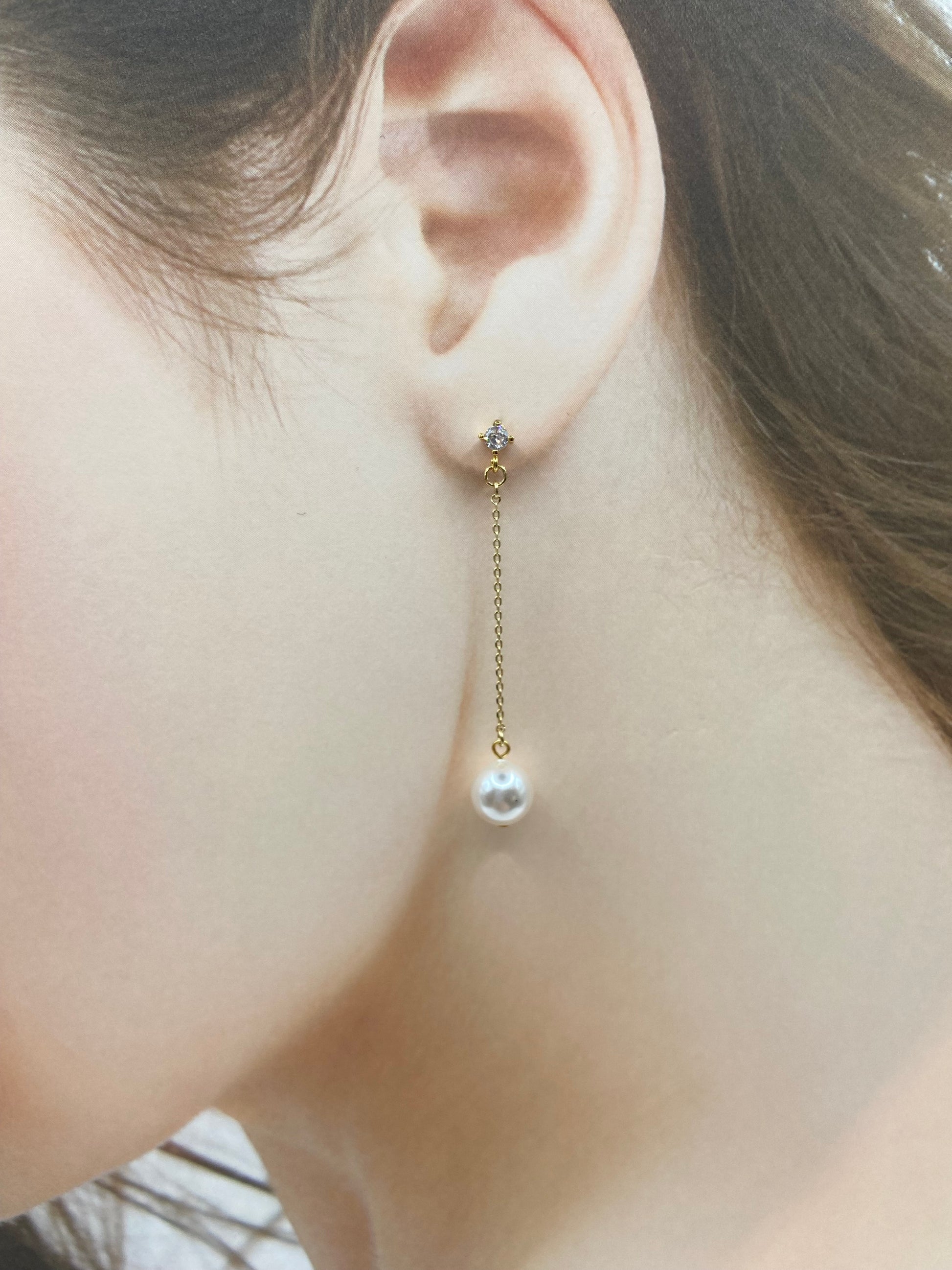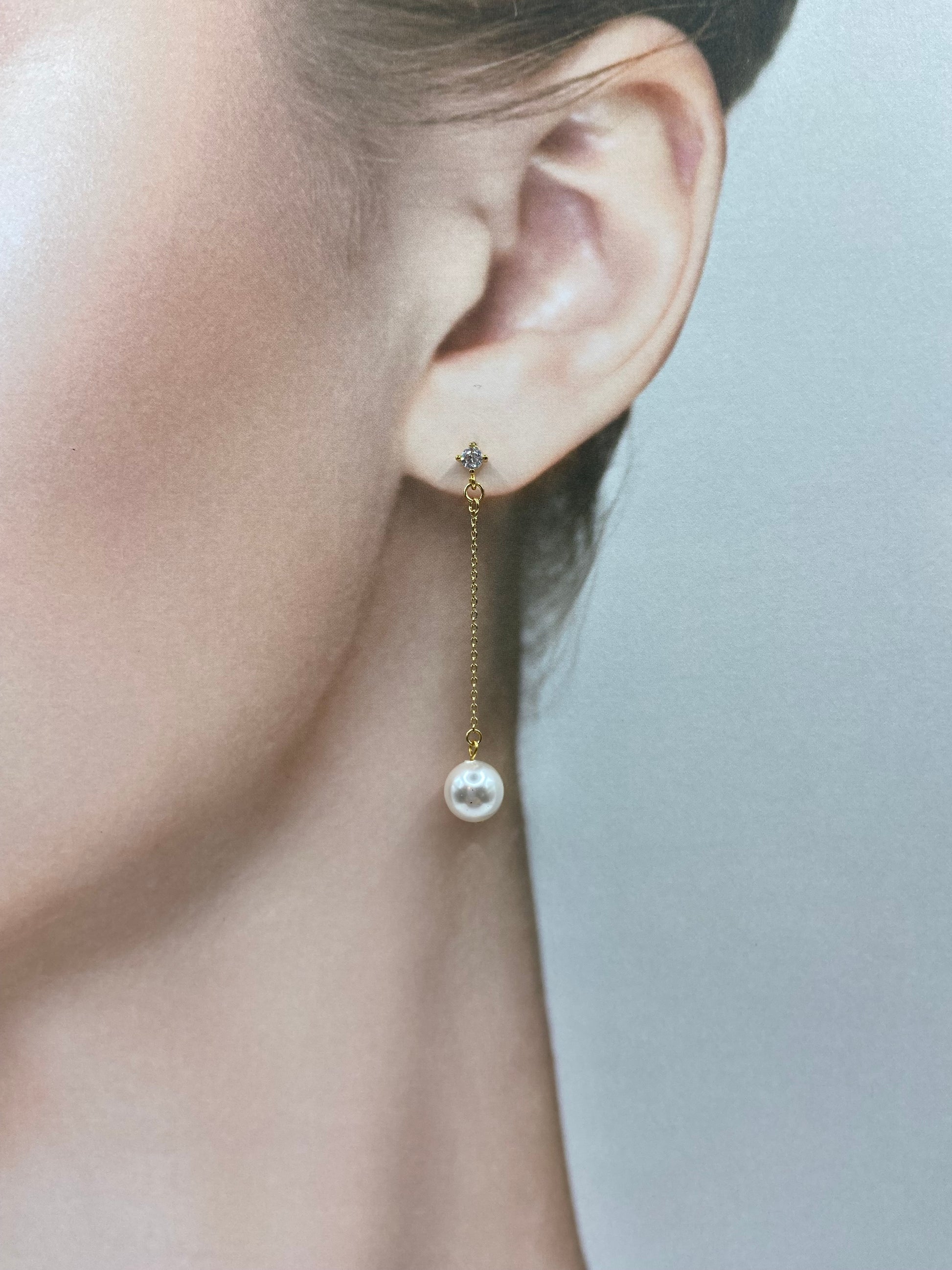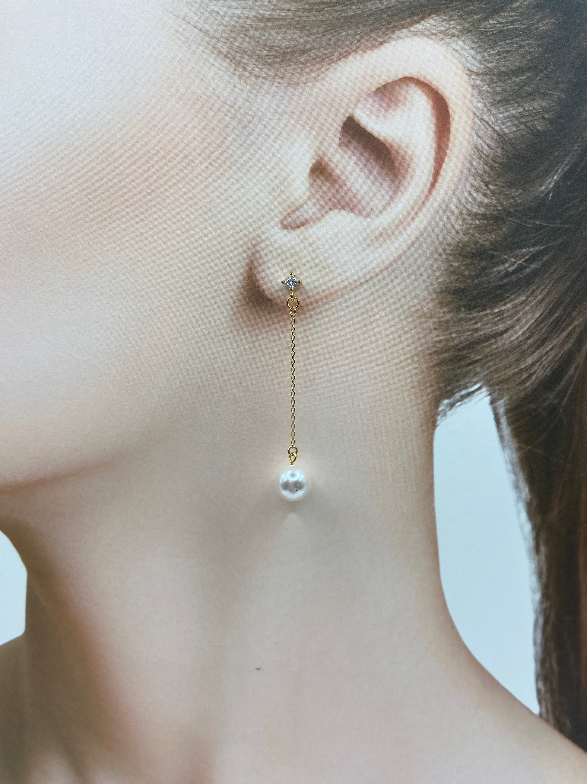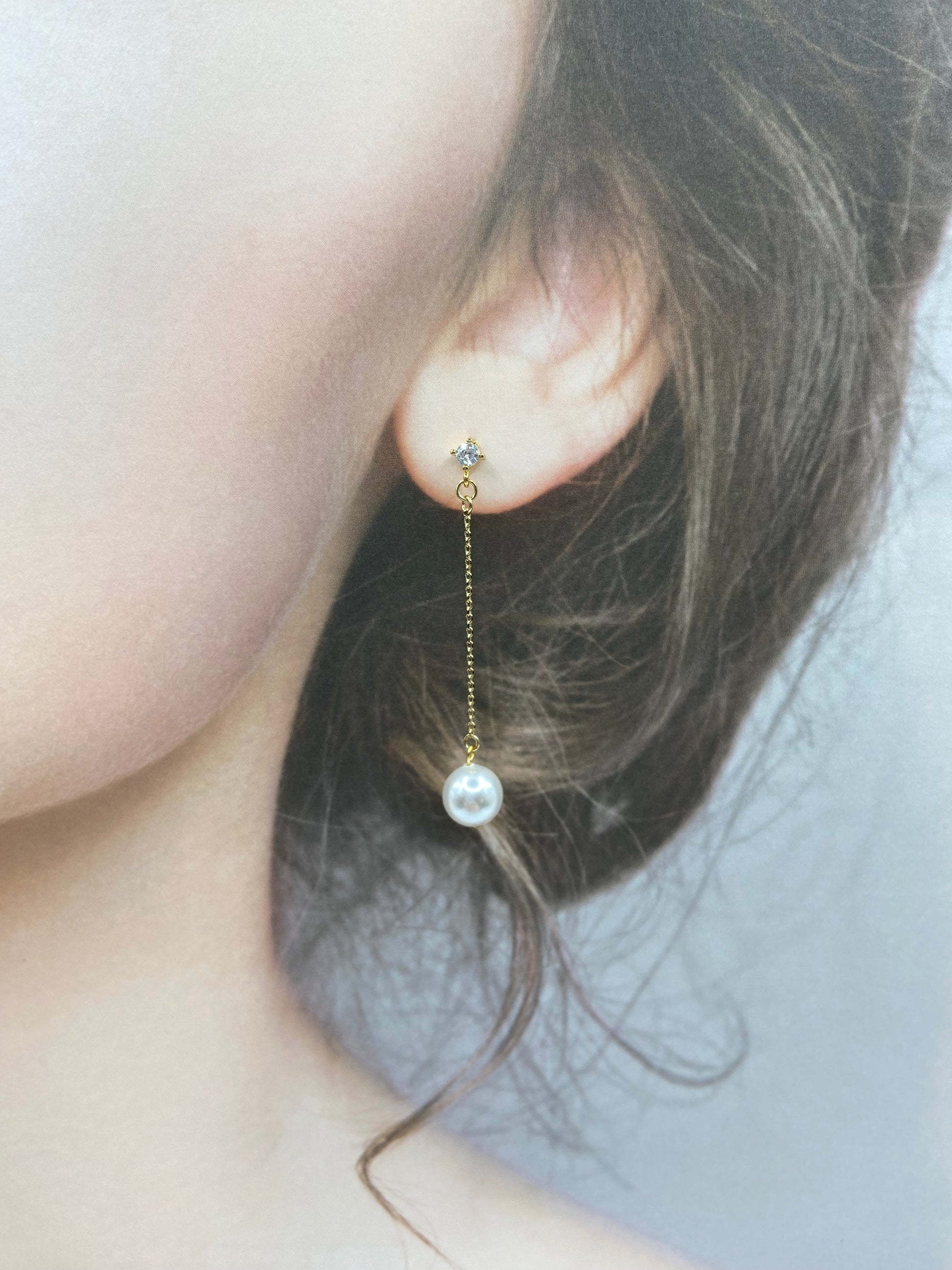 8mm 진주 골드 지르코니아 귀걸이 # 85