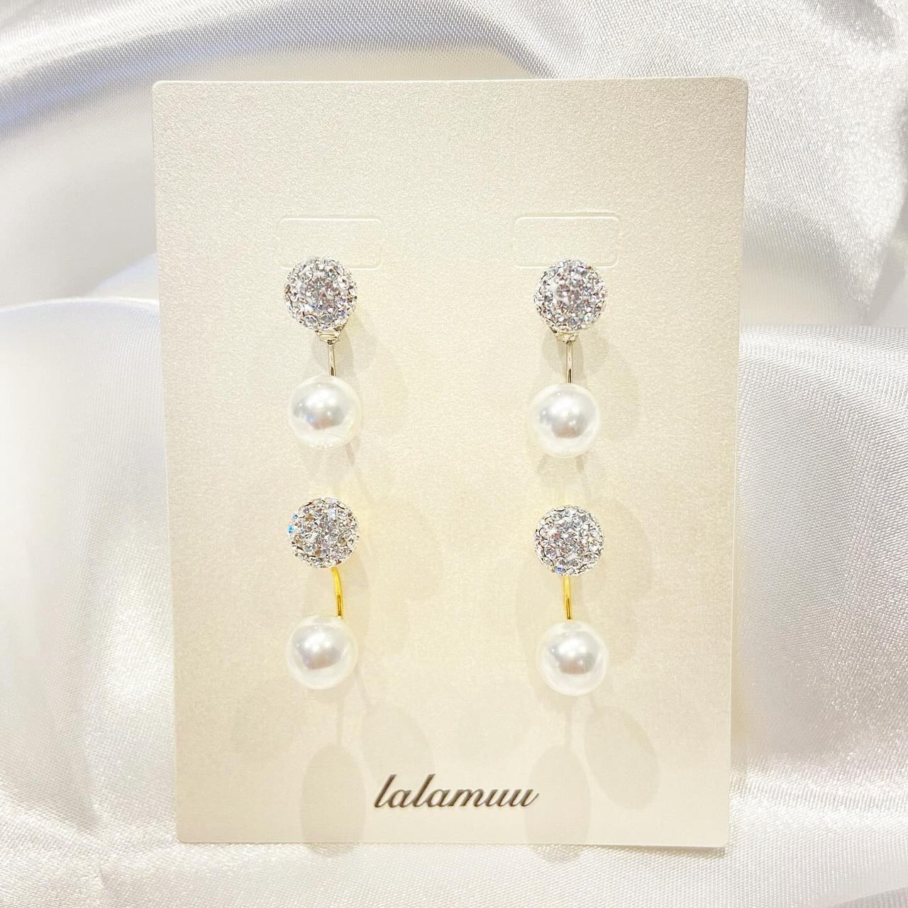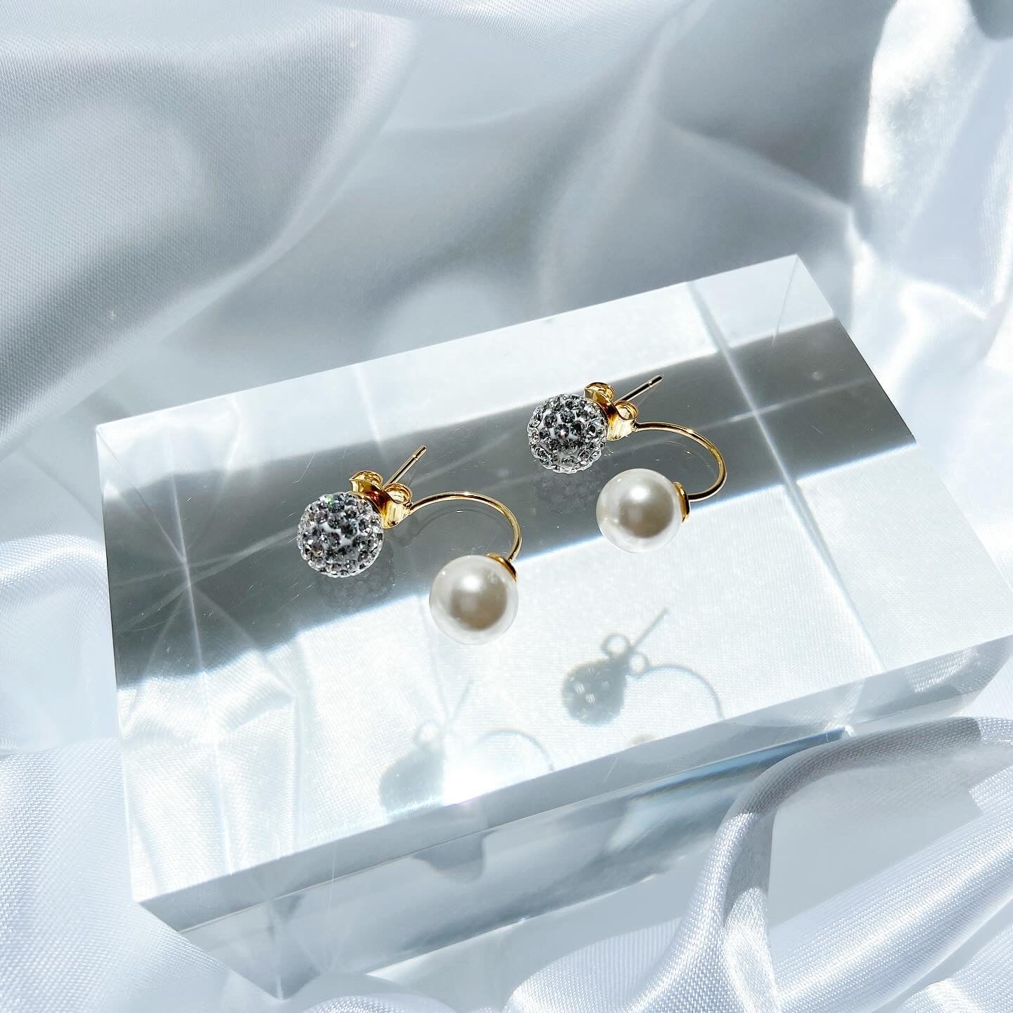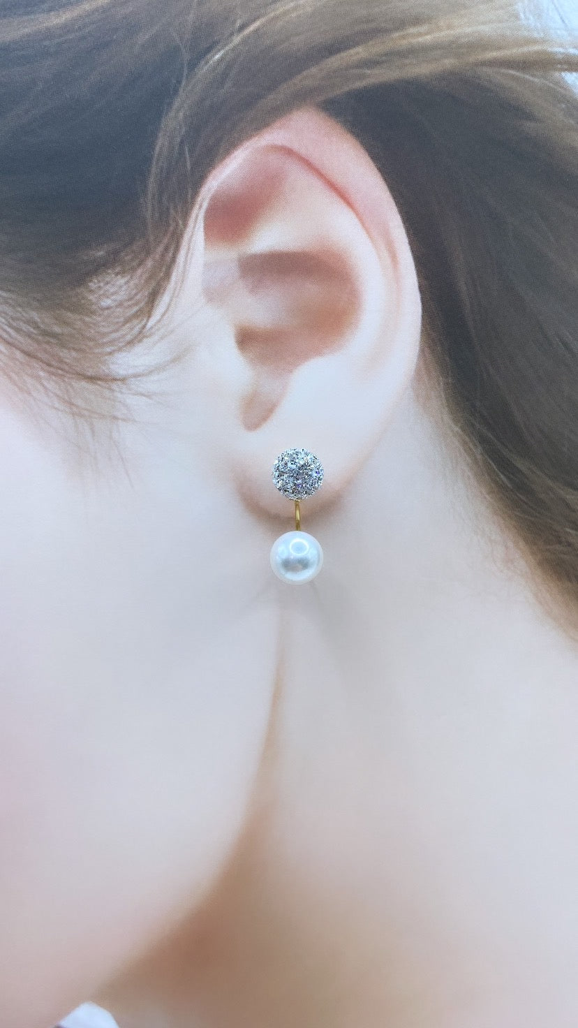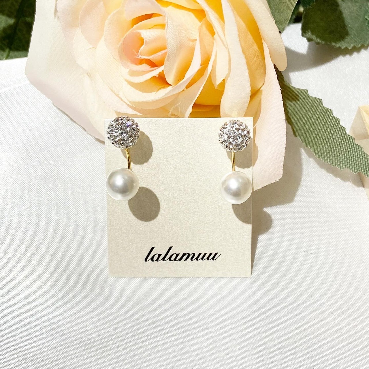 ラインストーンボールが輝き、パールがキャッチになっているピアスです。