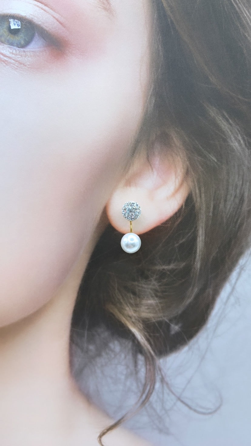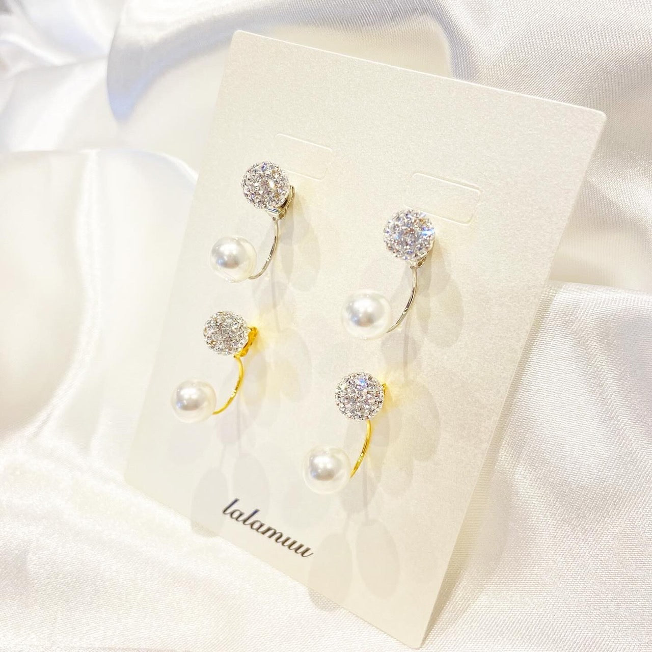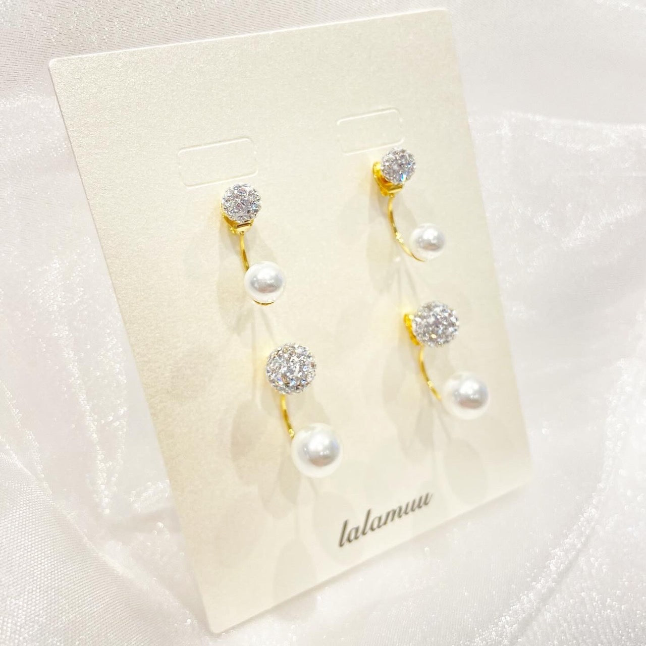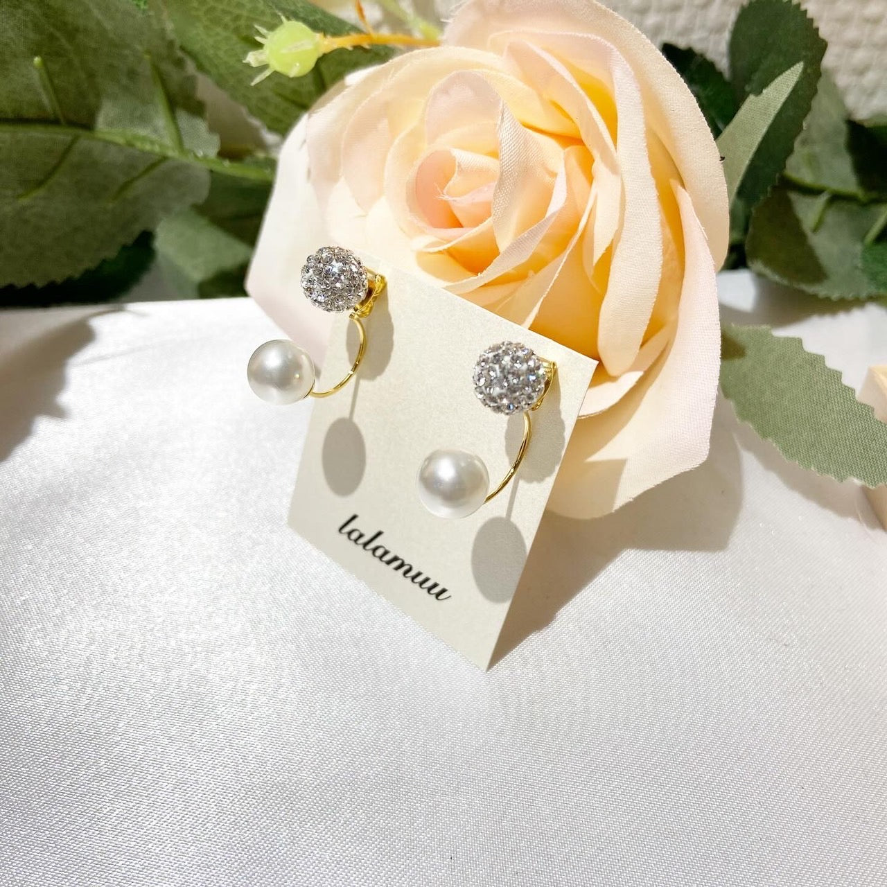 ラインストーンボールが輝き、パールがキャッチになっているピアスです。