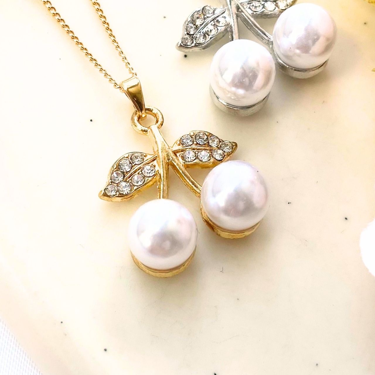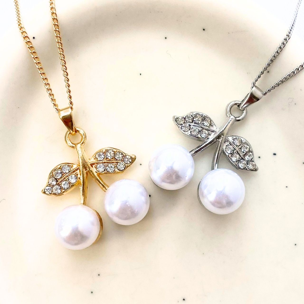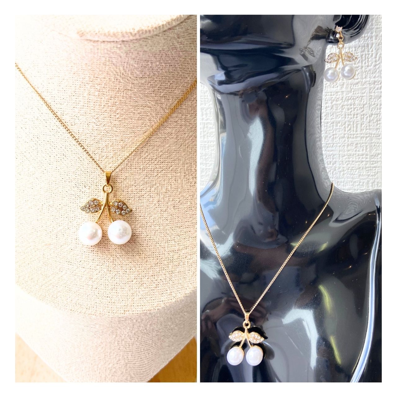 輝くチェリーのモチーフと艶やかなパールが調和し大人の女性にもぴったりな上品な仕上がり。