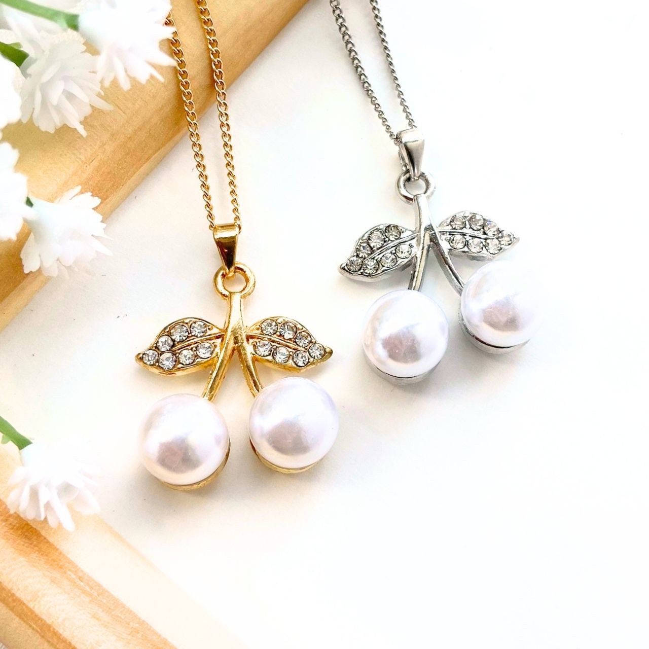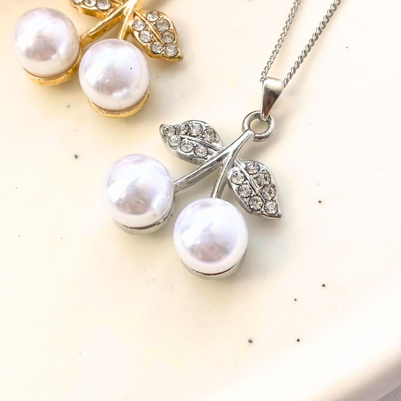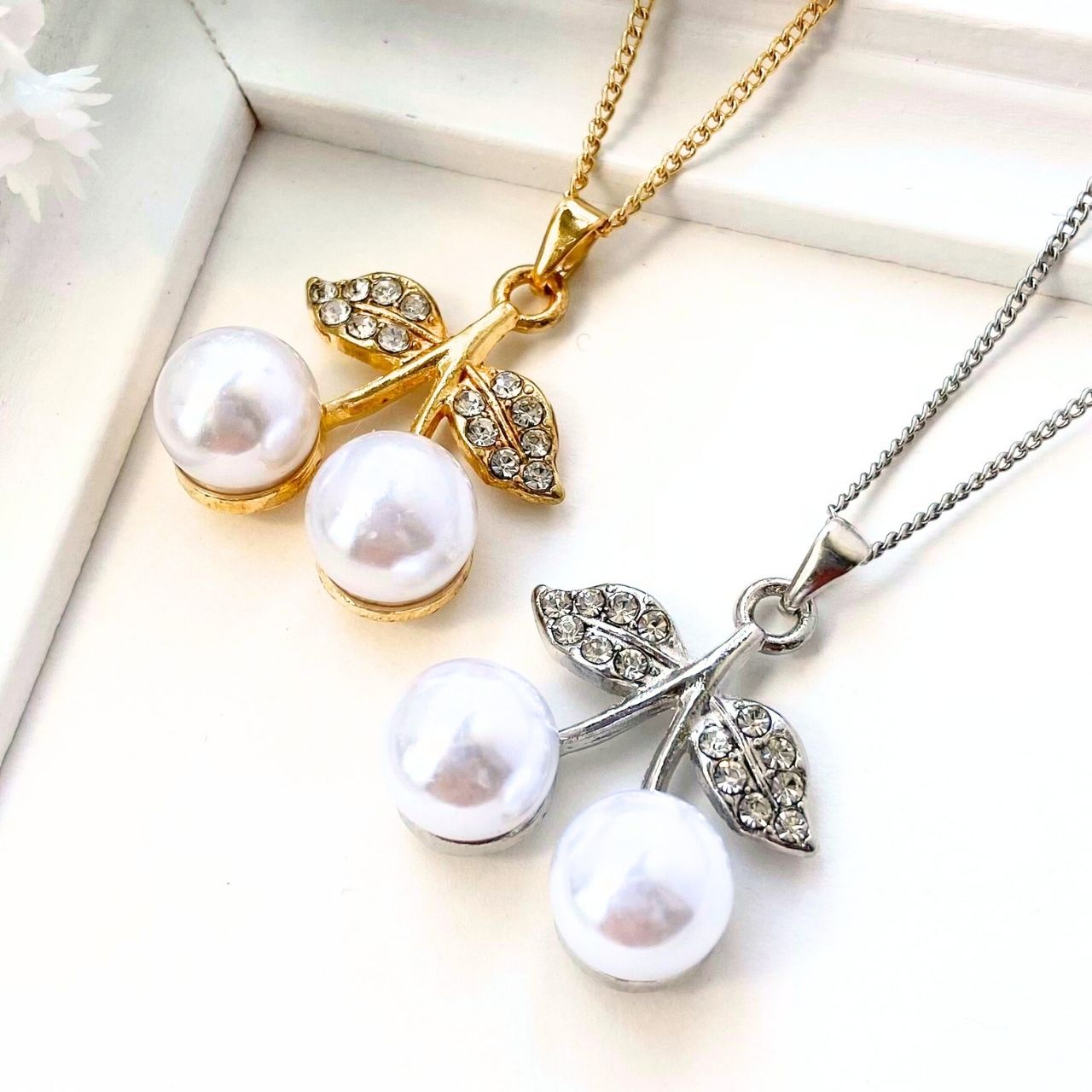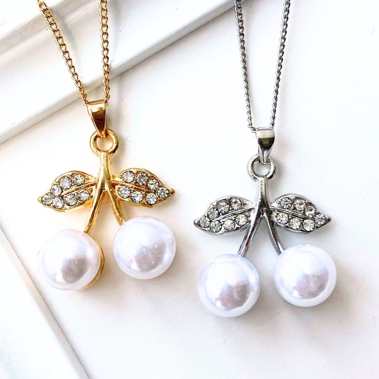 輝くチェリーのモチーフと艶やかなパールが調和し大人の女性にもぴったりな上品な仕上がり。