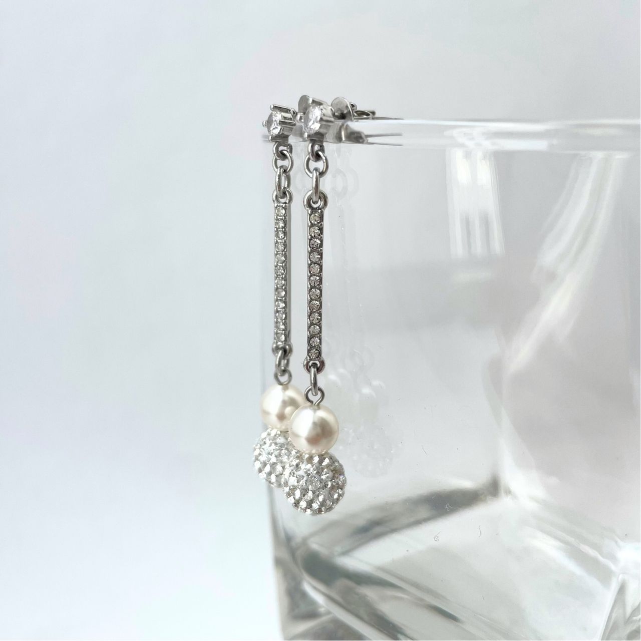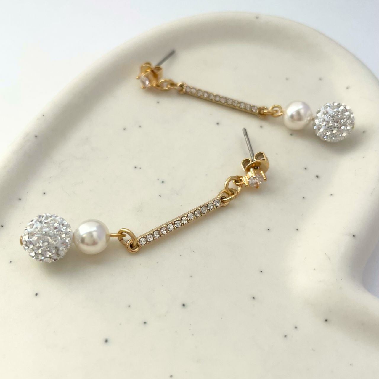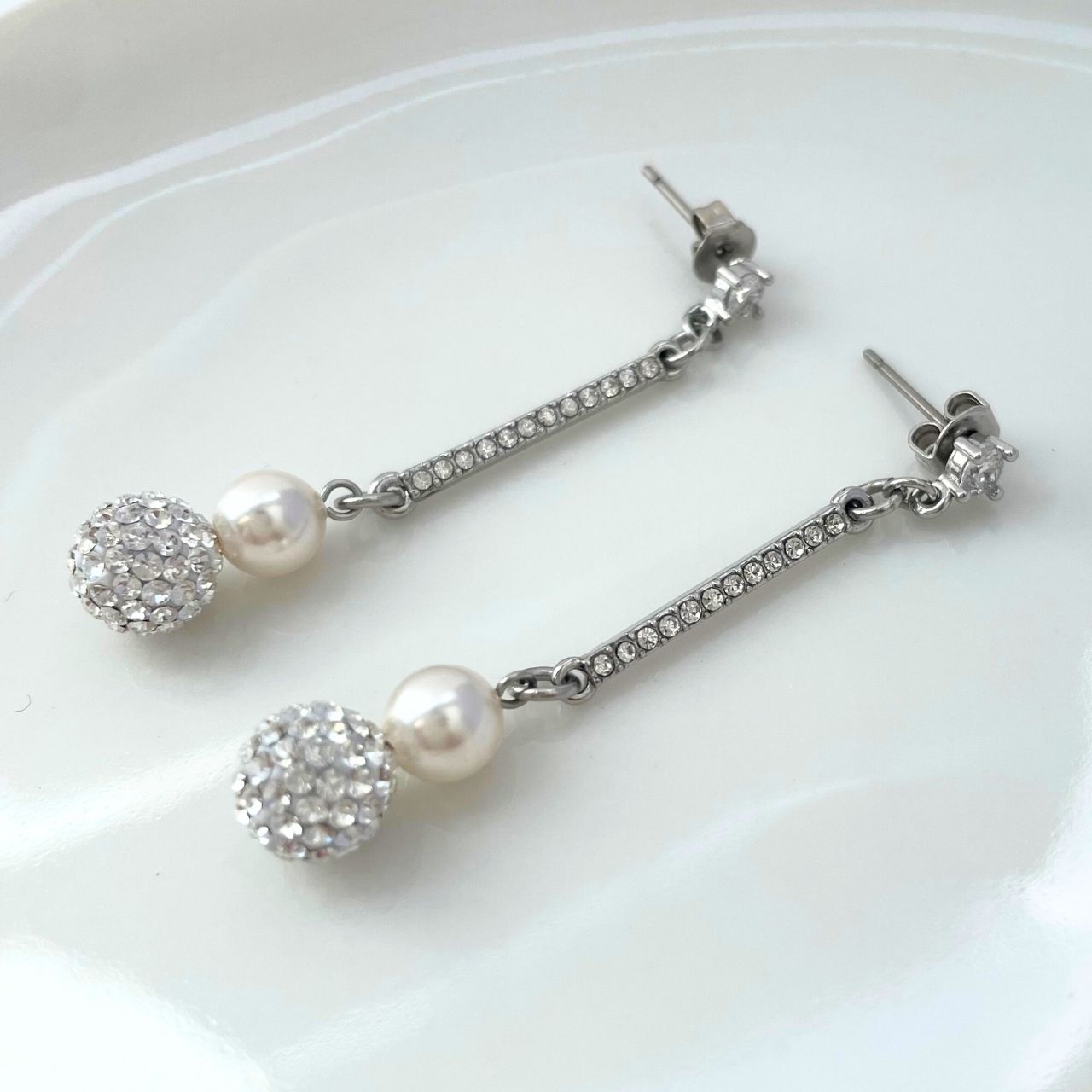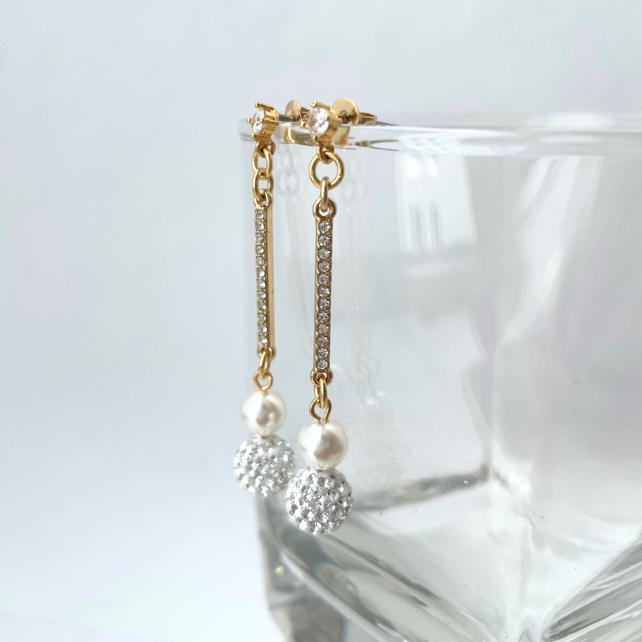 パヴェボール×パールラインストーンピアス