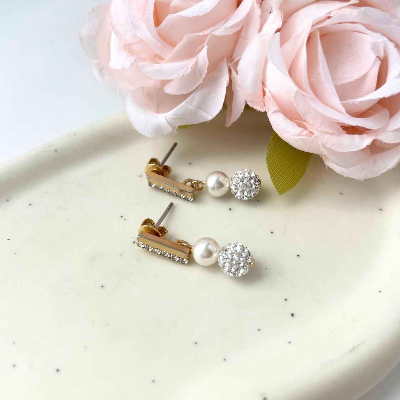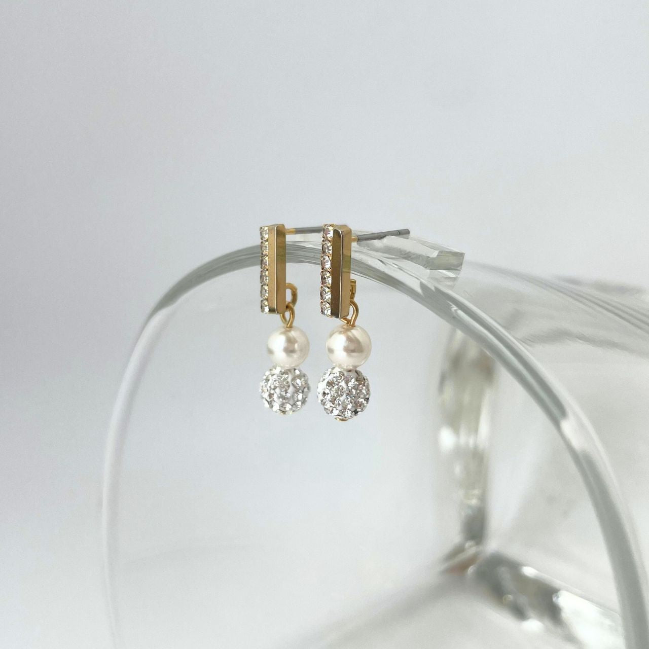 —パヴェボール×パールラインストーンピアス—