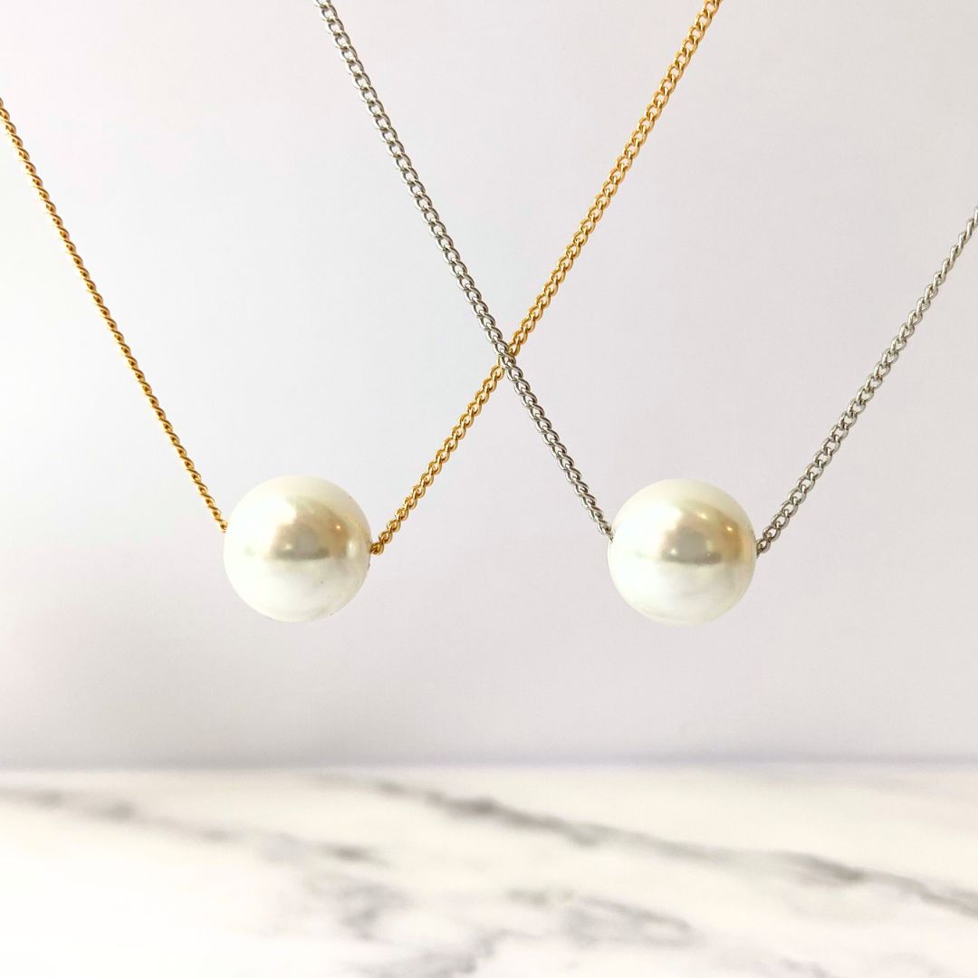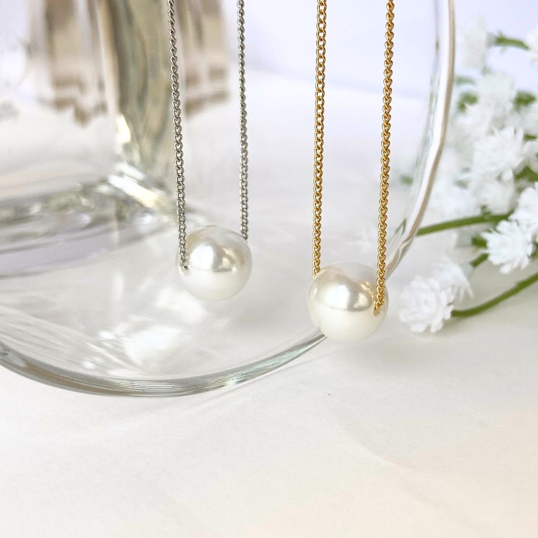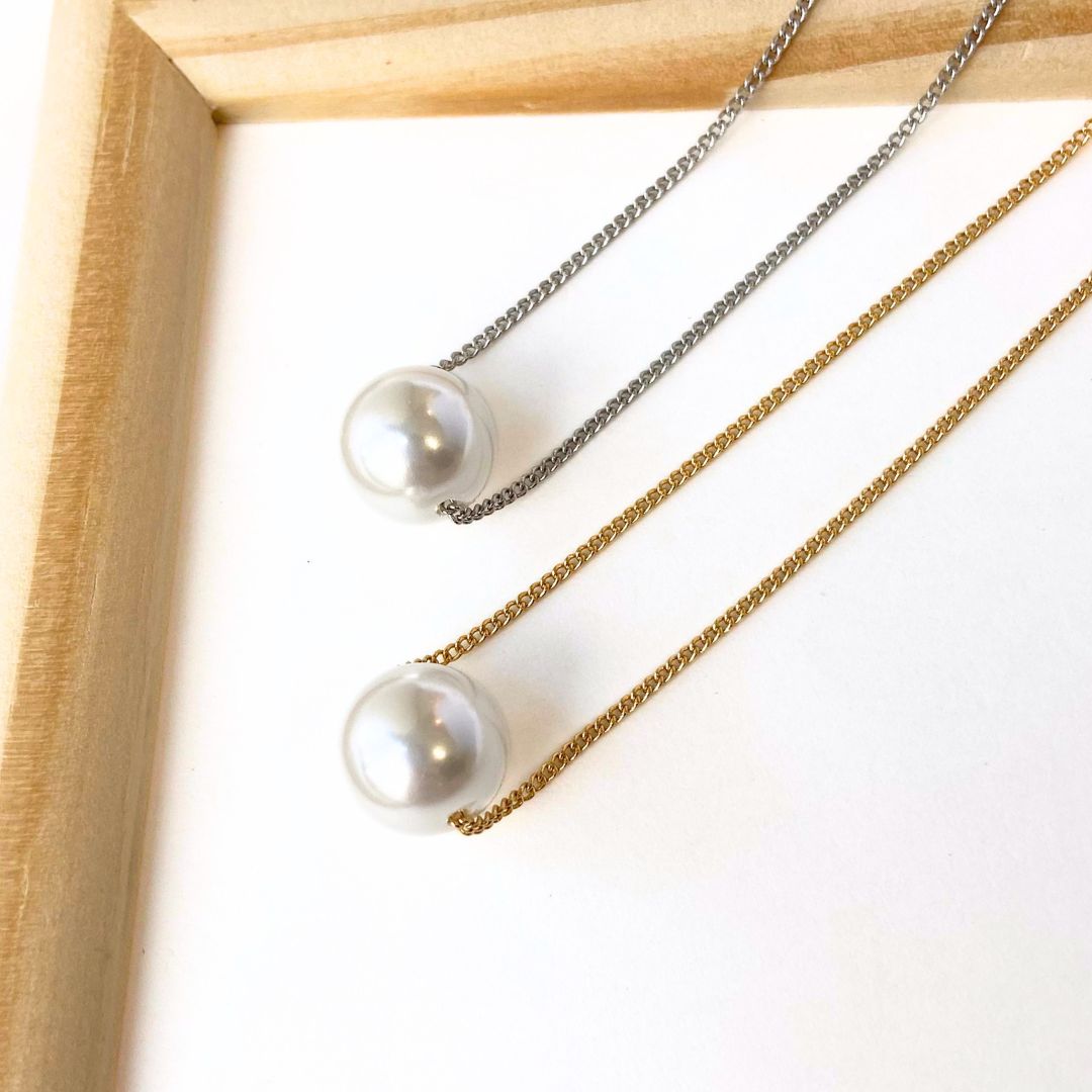 シンプルな一粒パールのネックレスでございます。