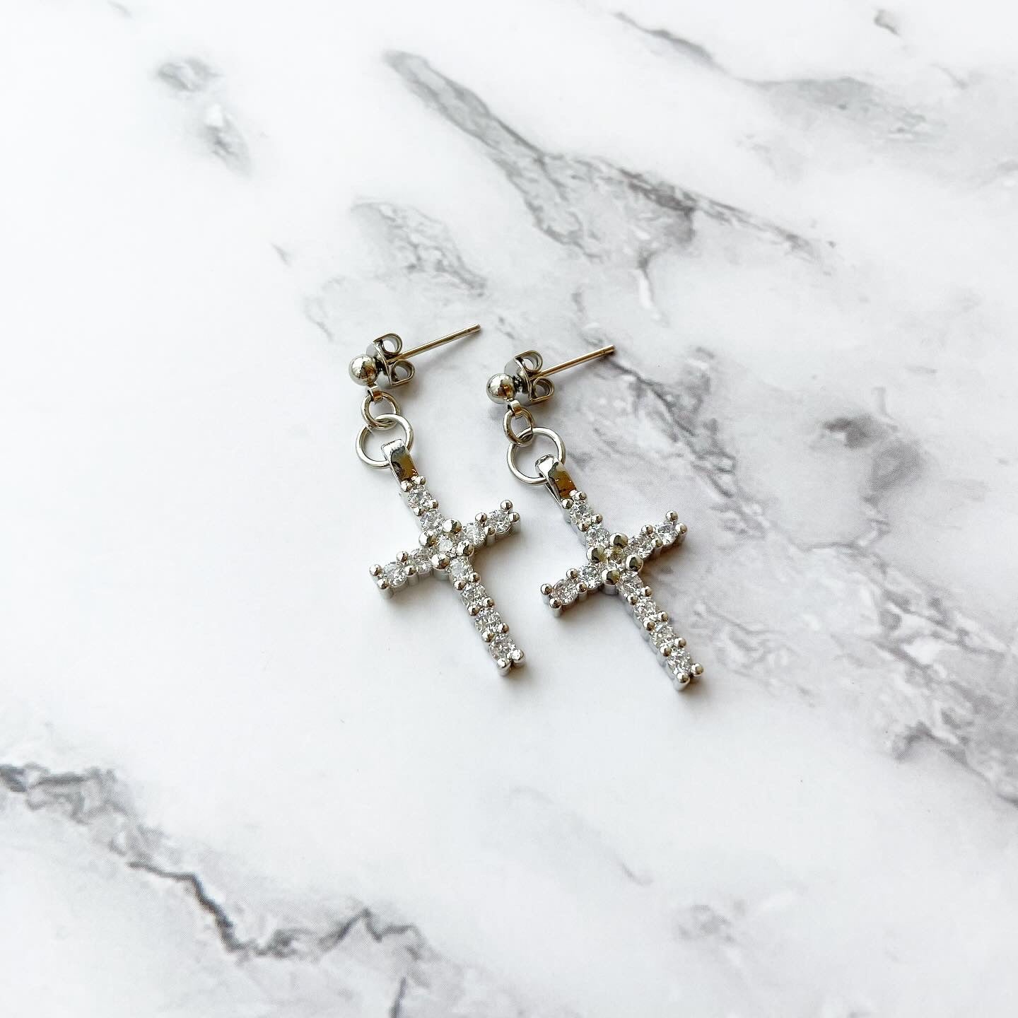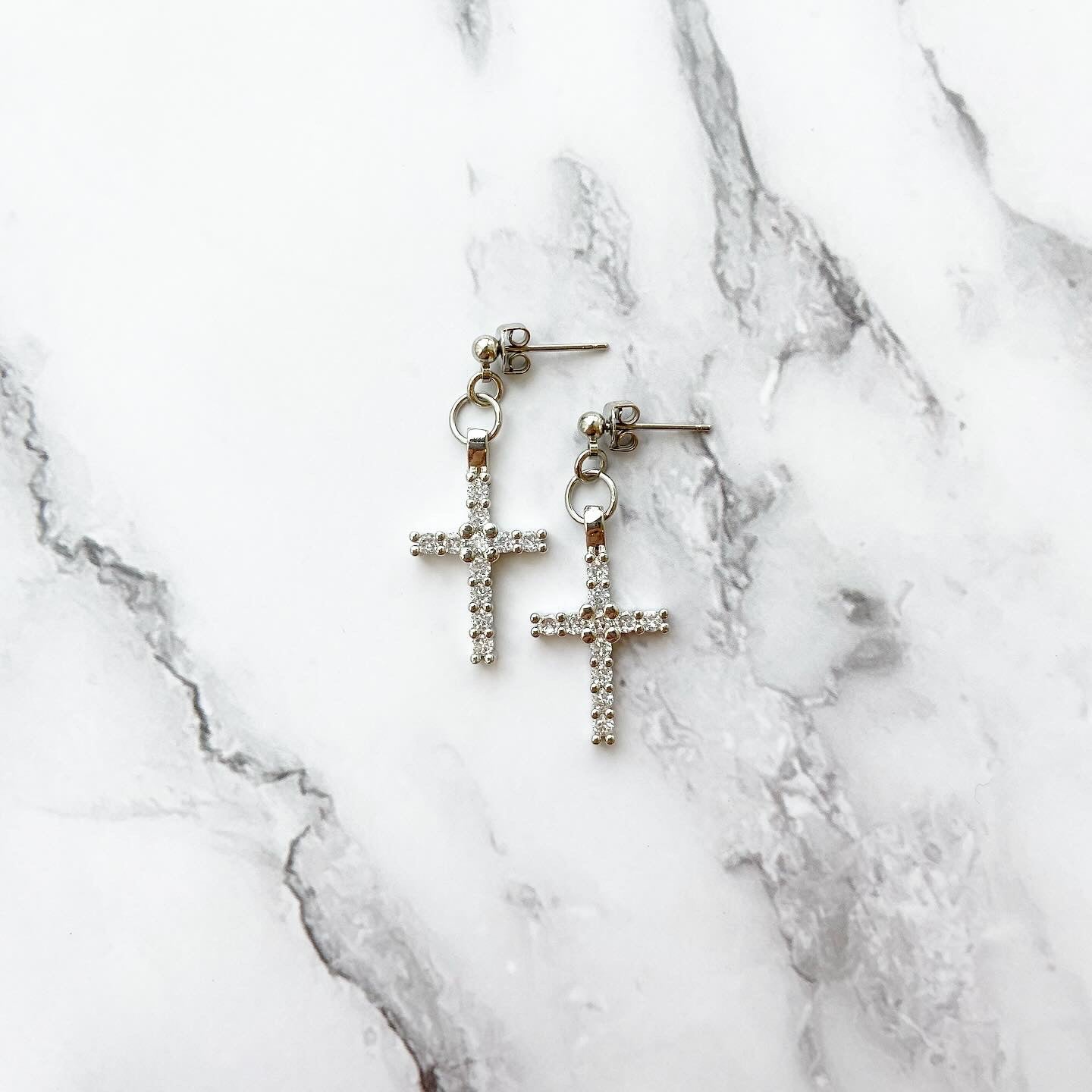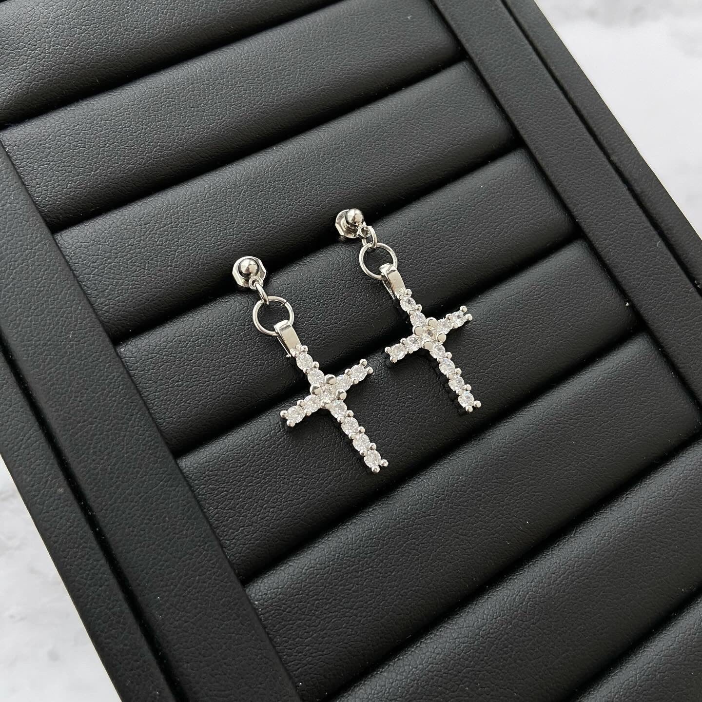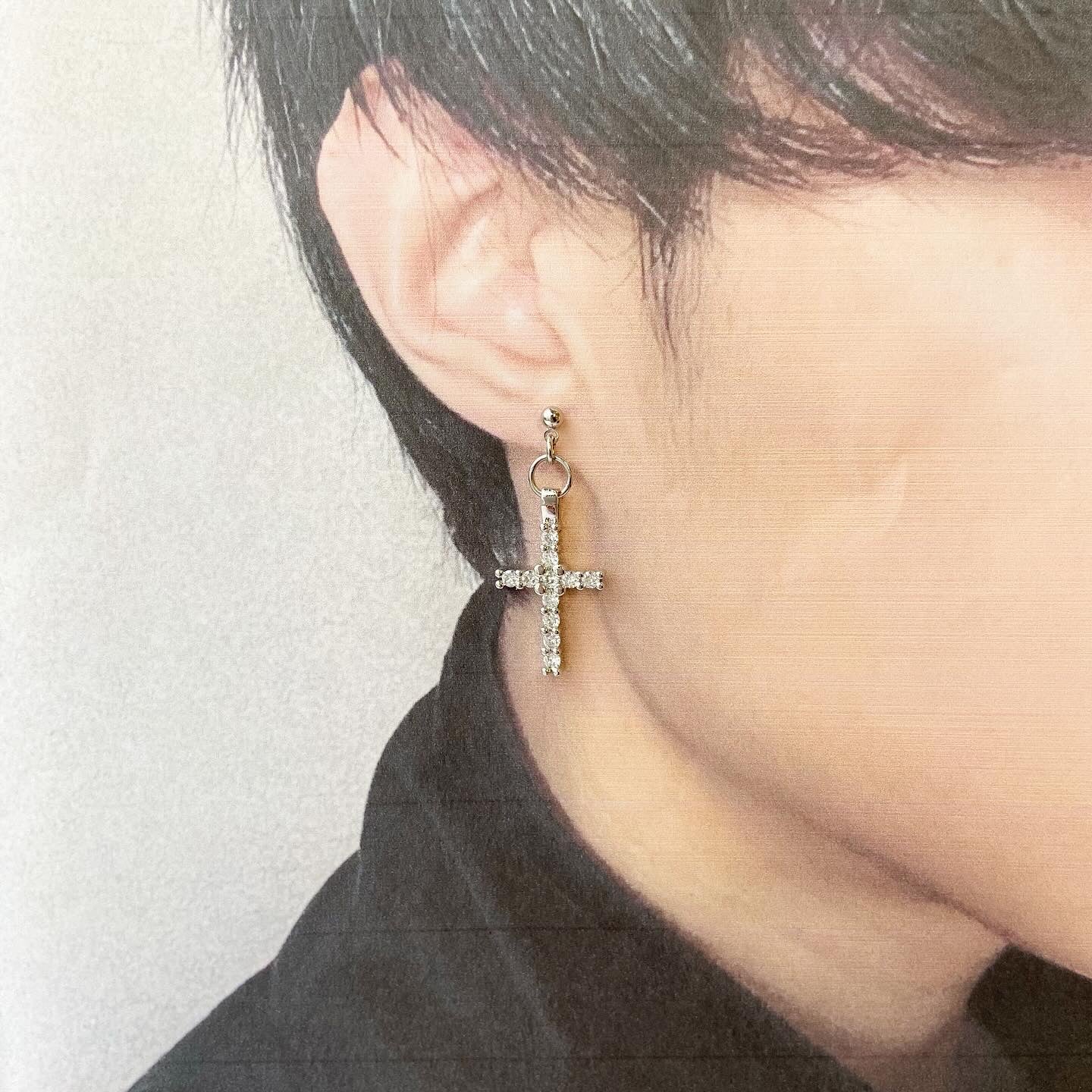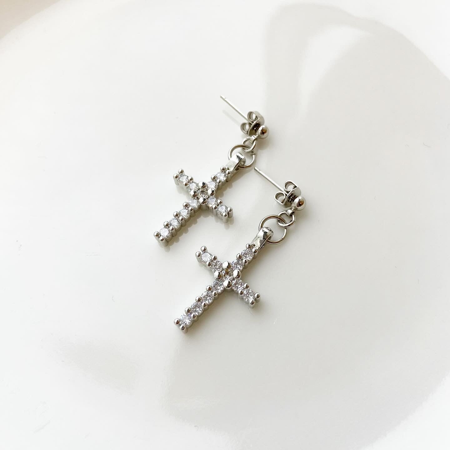透明感と上品な輝きが特徴のジルコニアを使ったクロスピアスでございます。