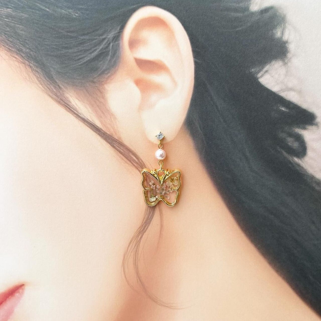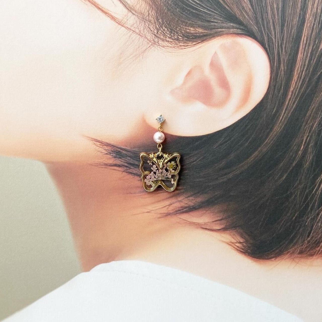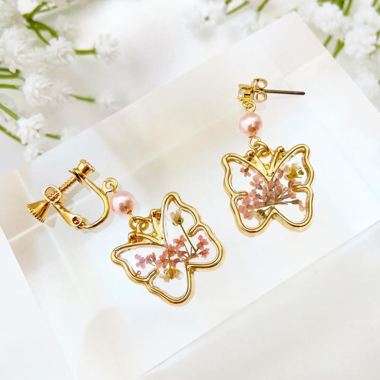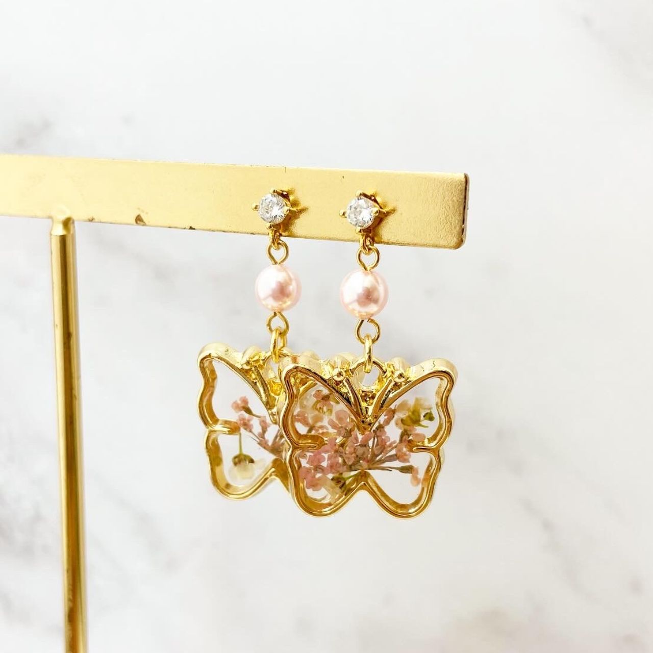 【選べる金具】バタフライプレートピンクパールジルコニアピアス