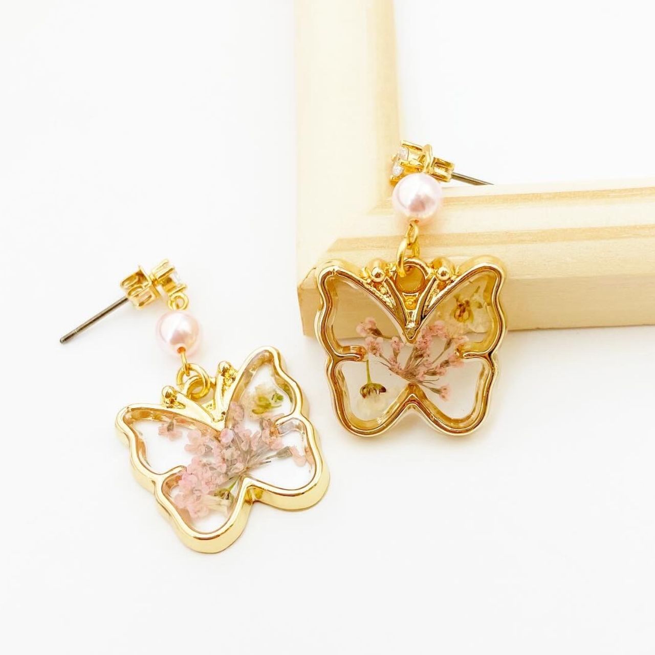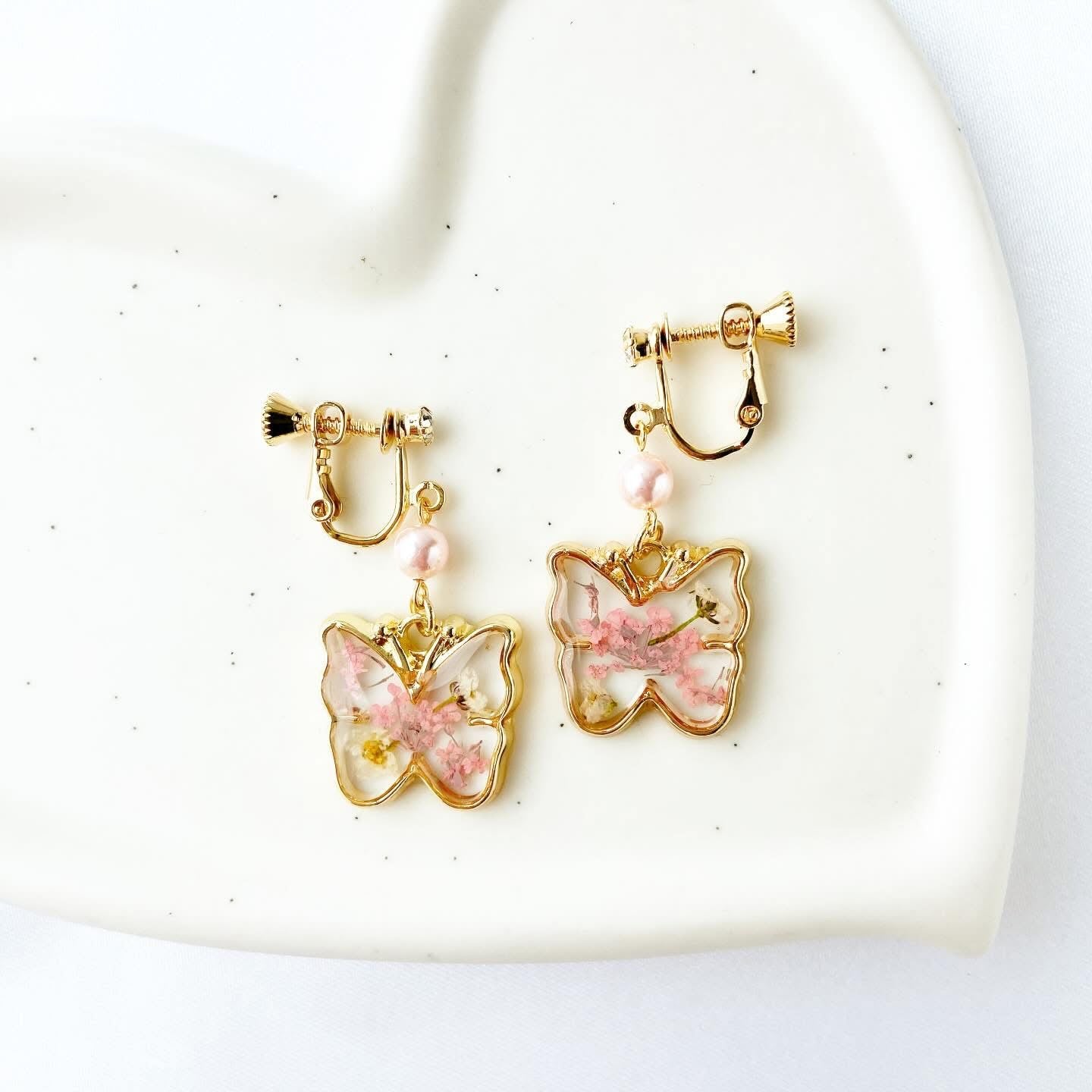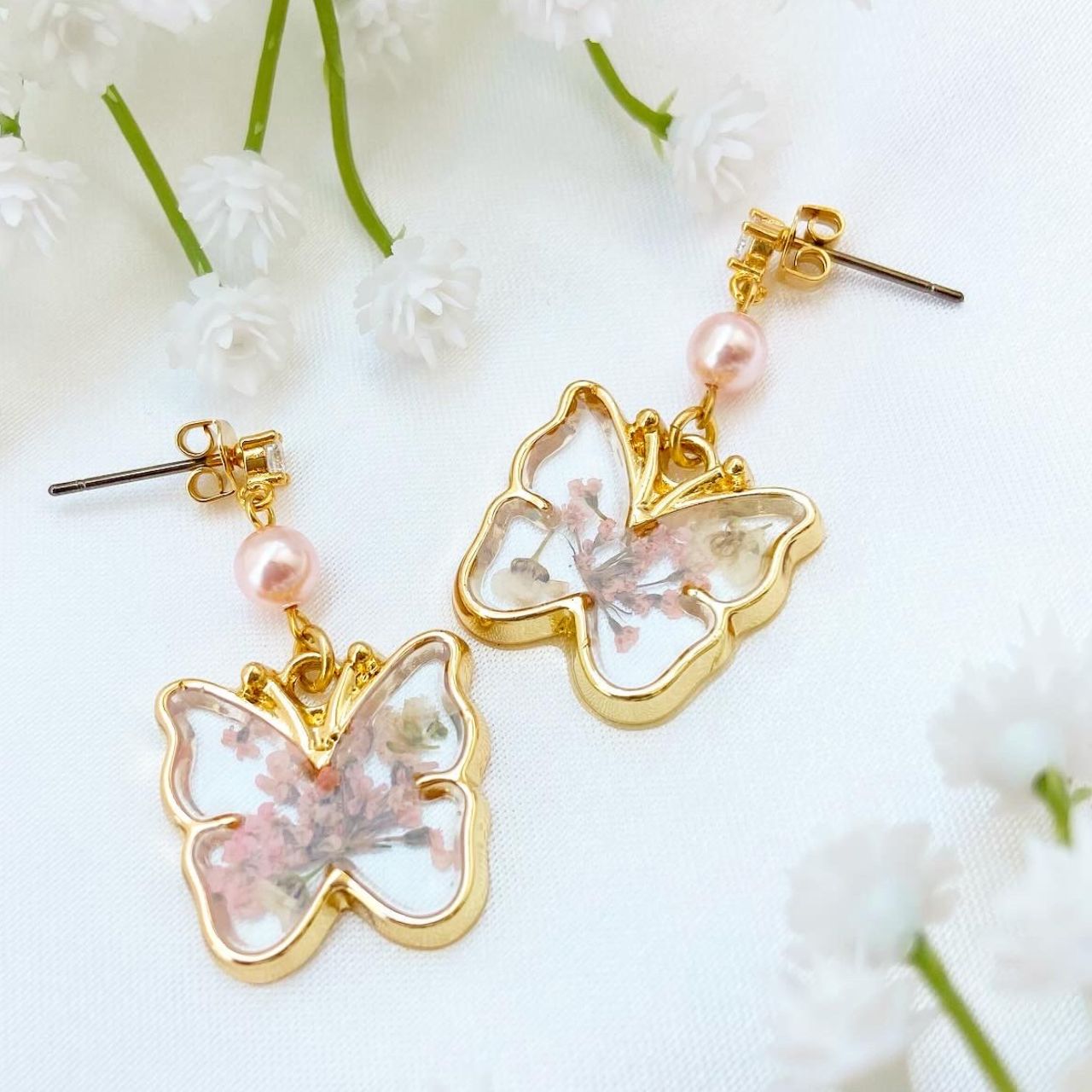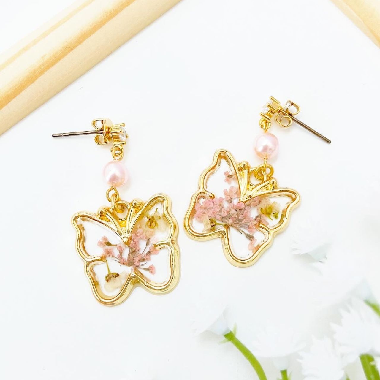 【選べる金具】バタフライプレートピンクパールジルコニアピアス