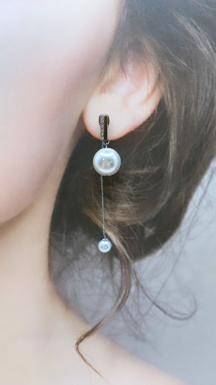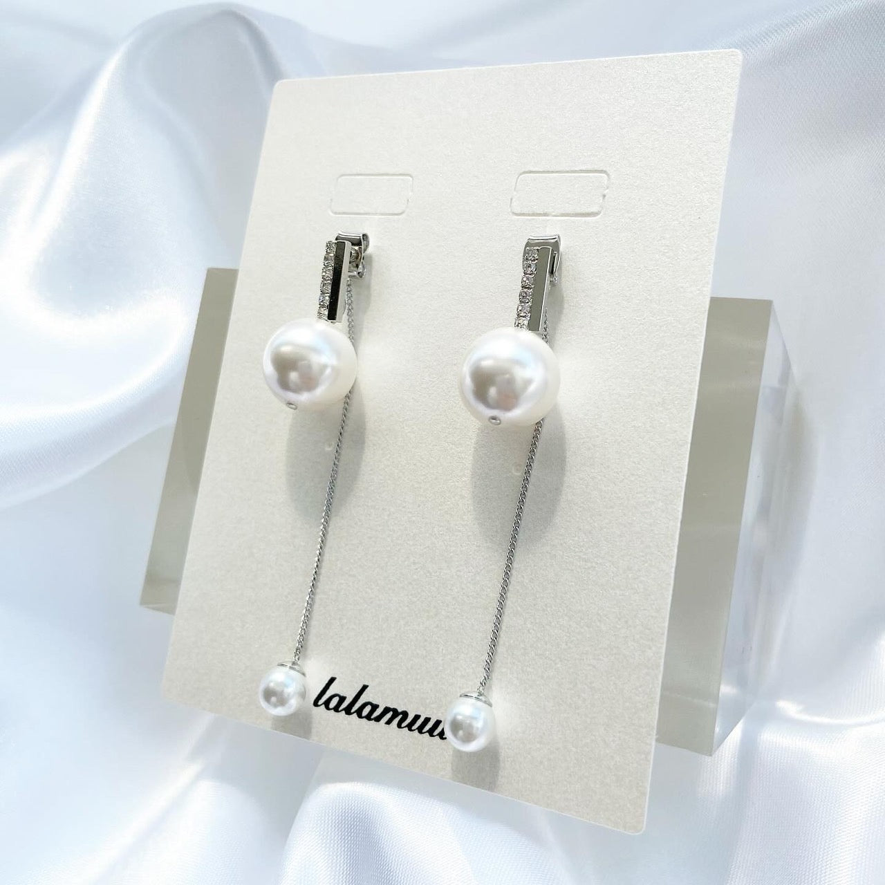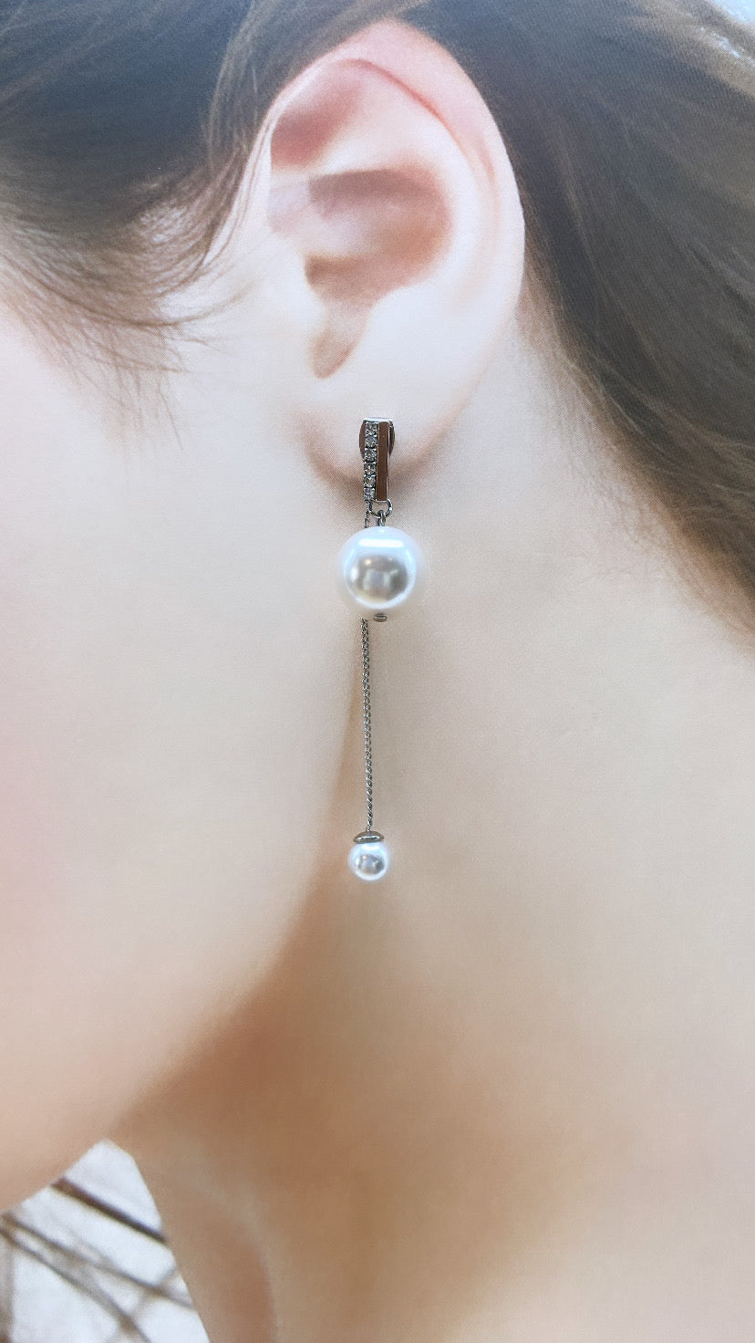 【ポスター着用作品】12mmパールラインストーンバー 6mmパールチェーンバックキャッチピアス A72