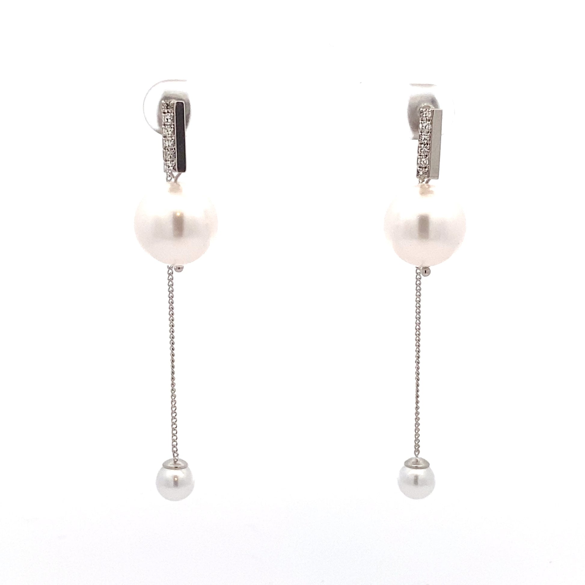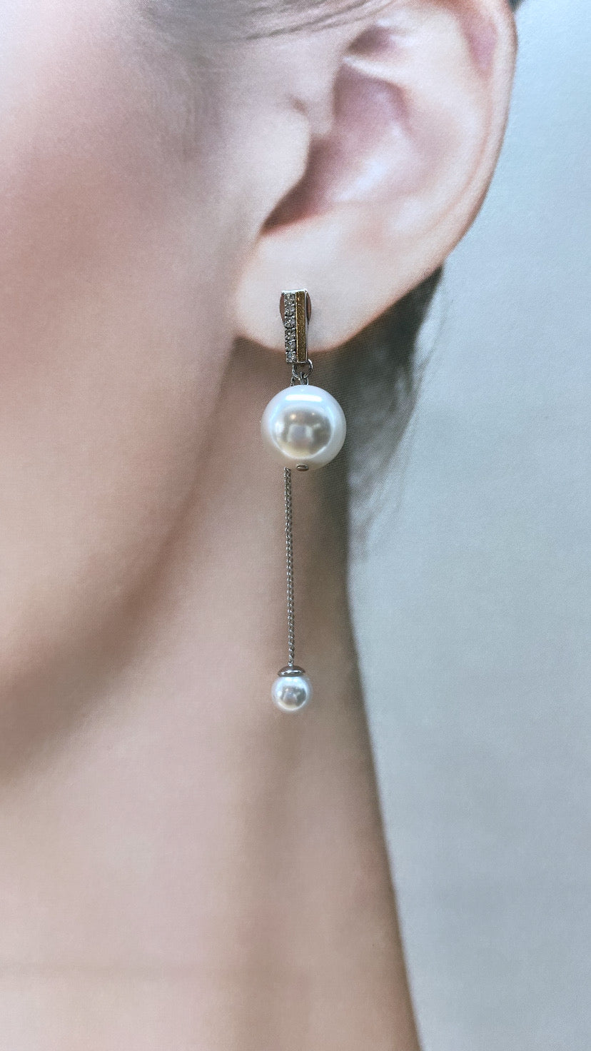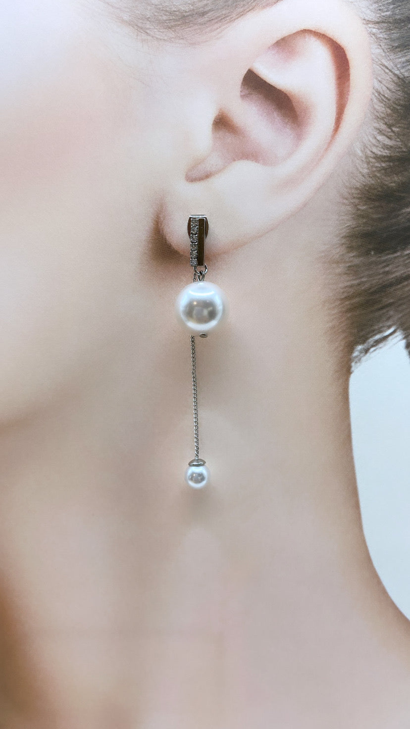 【ポスター着用作品】12mmパールラインストーンバー 6mmパールチェーンバックキャッチピアス A72