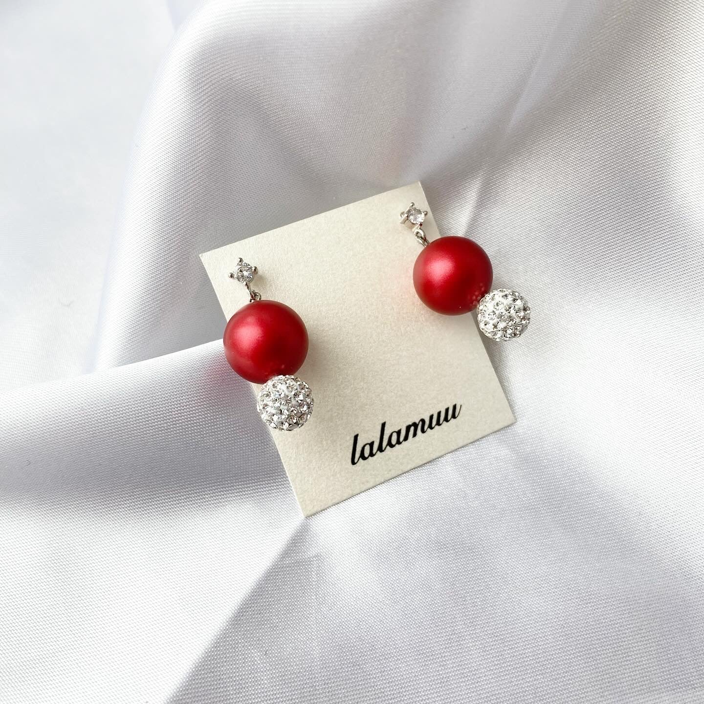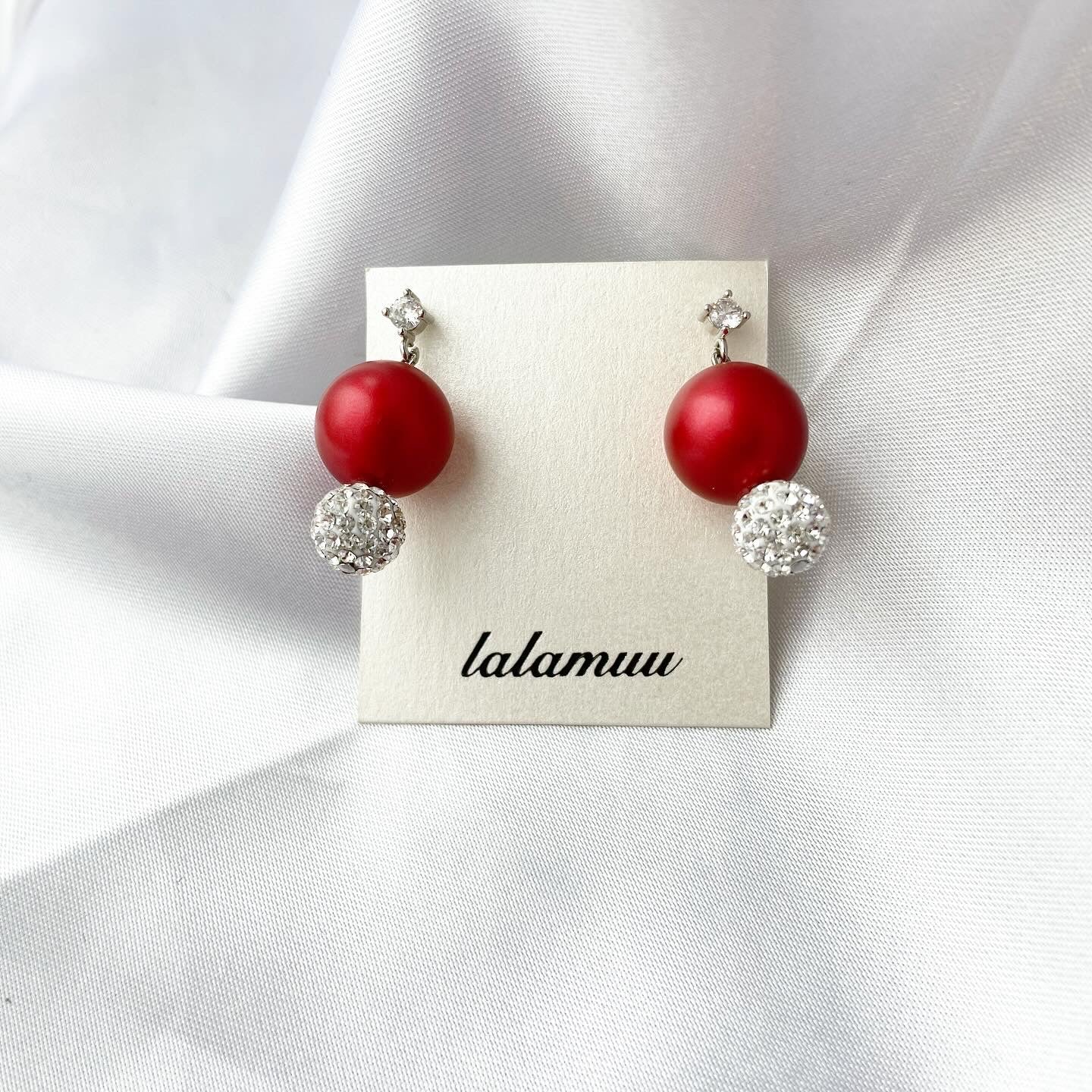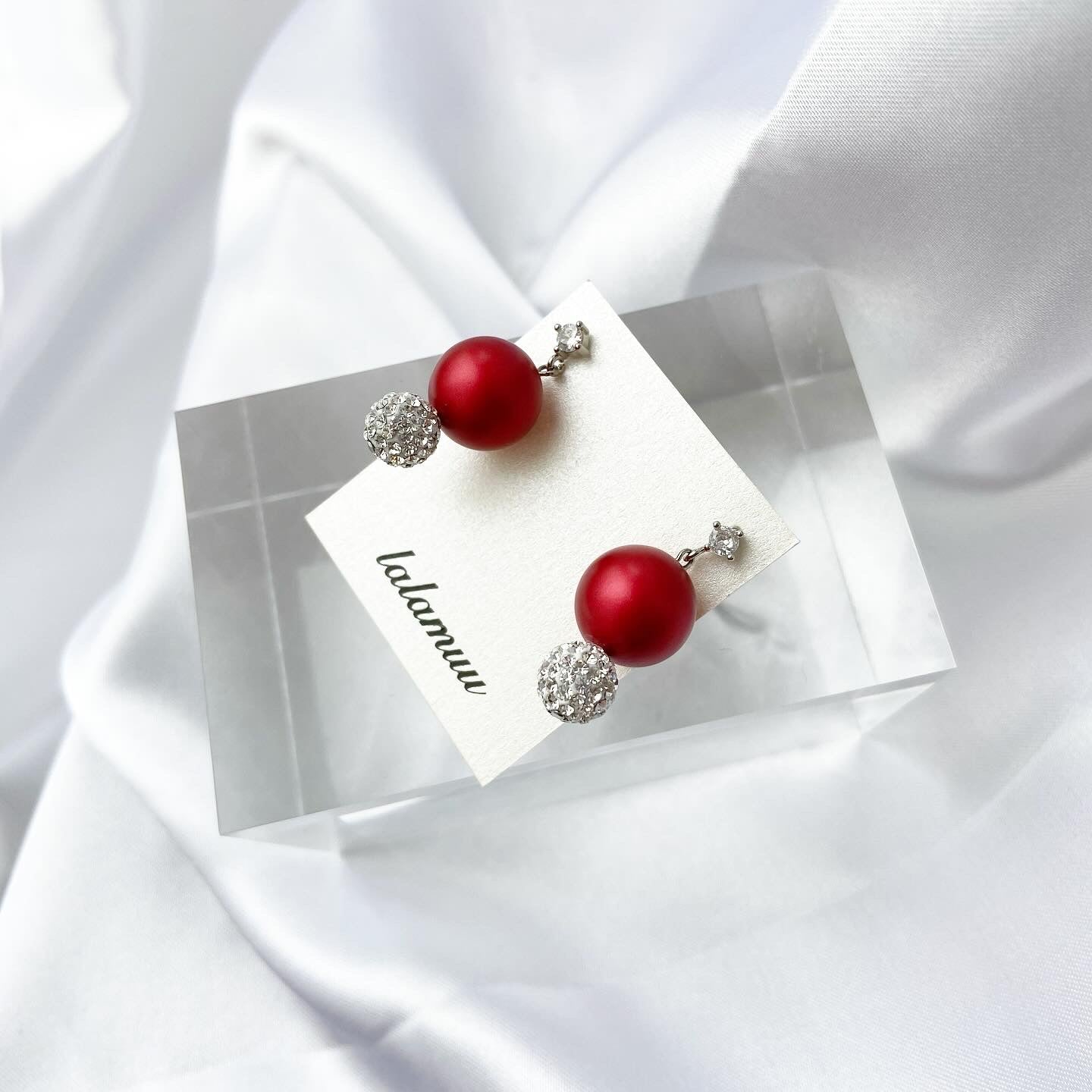キラキラ輝くラインストーンボールと高級感あるレッドパールが上品な雰囲気にしてくれます。