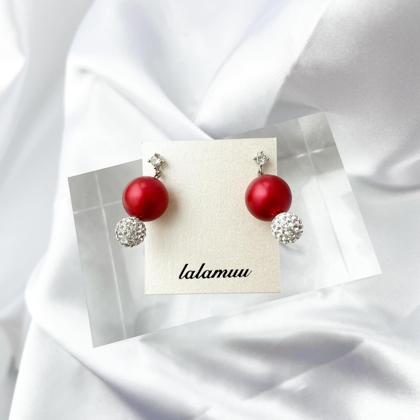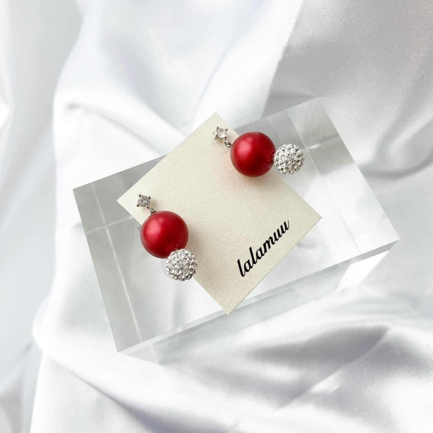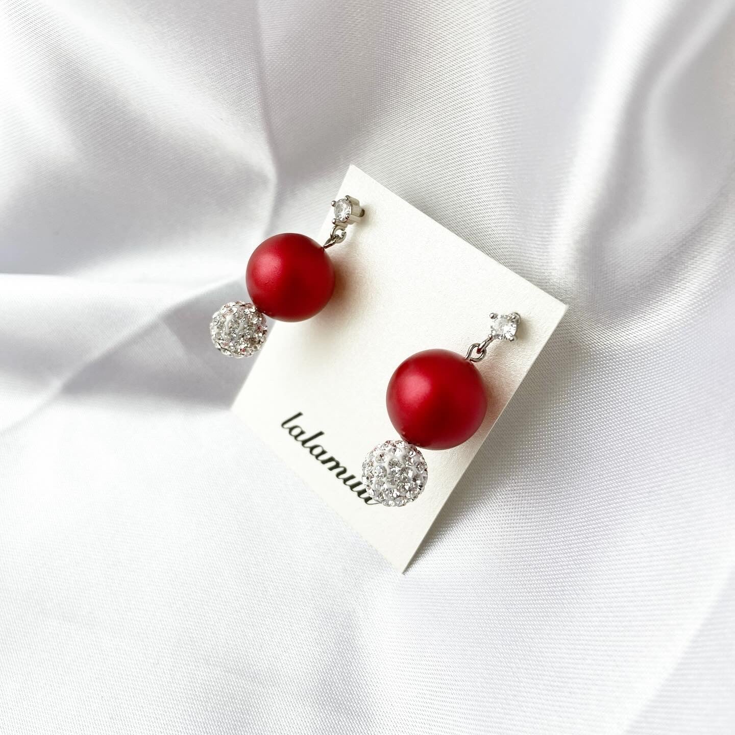 キラキラ輝くラインストーンボールと高級感あるレッドパールが上品な雰囲気にしてくれます。