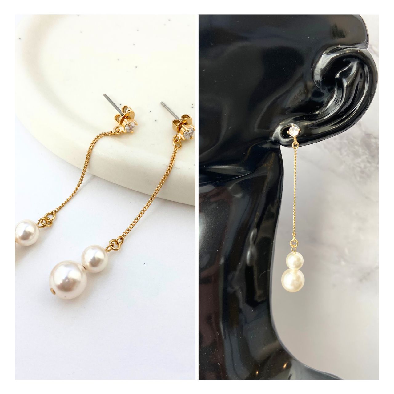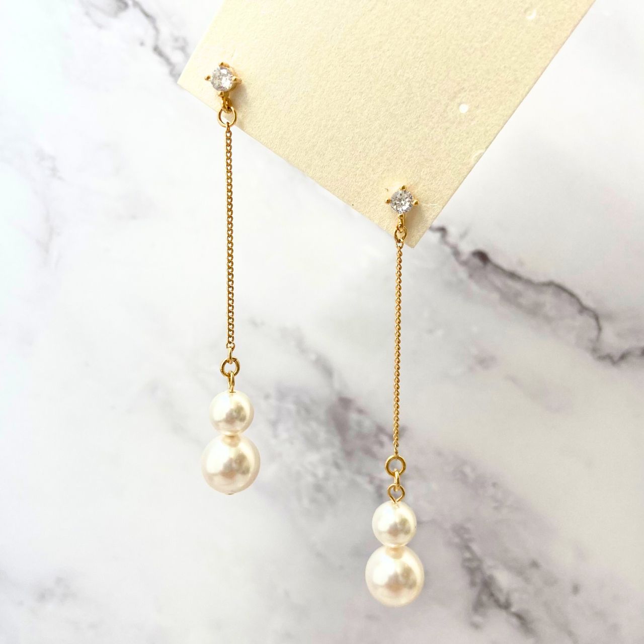 上品なジルコニアを使用し、大きさの違うパールで上品さをプラス。