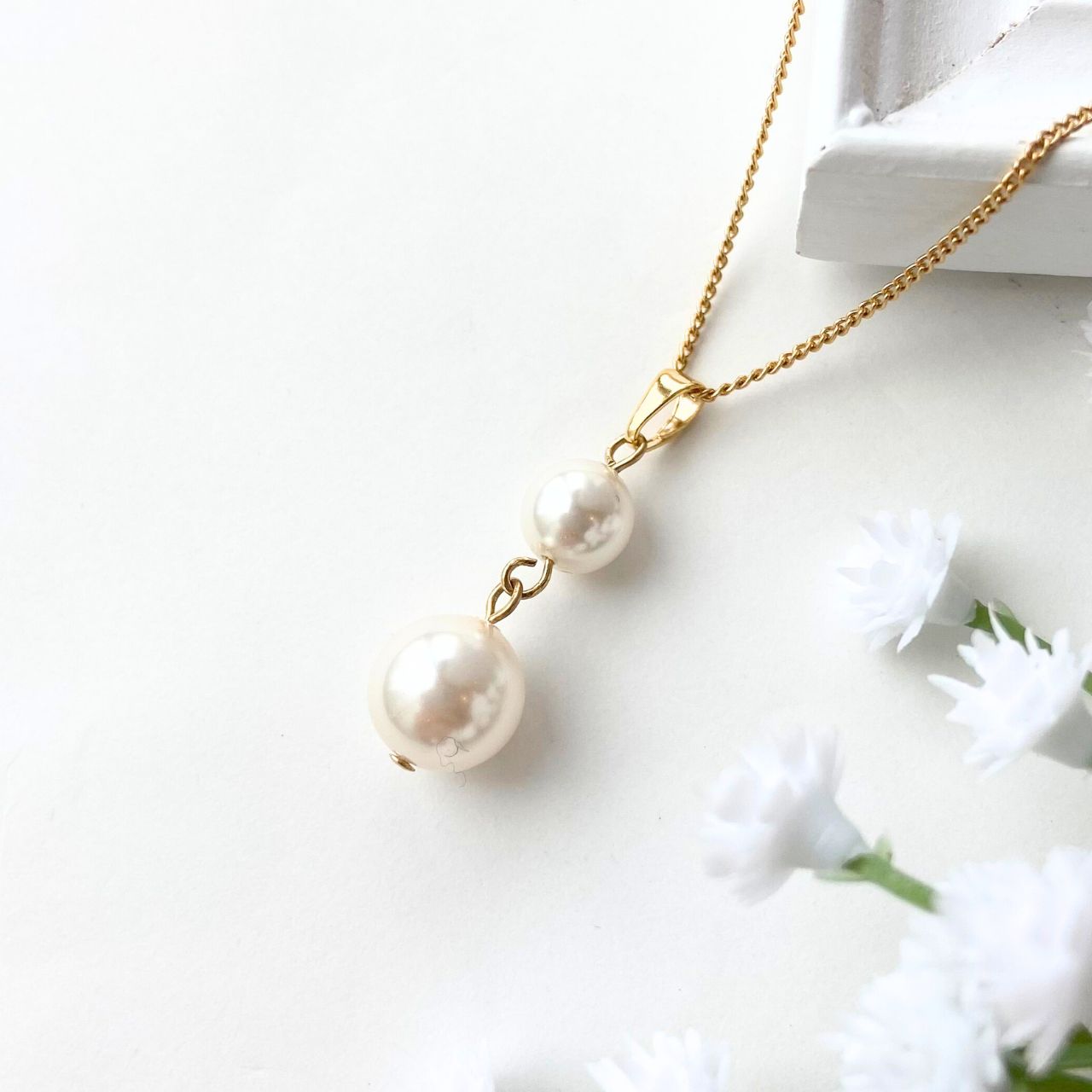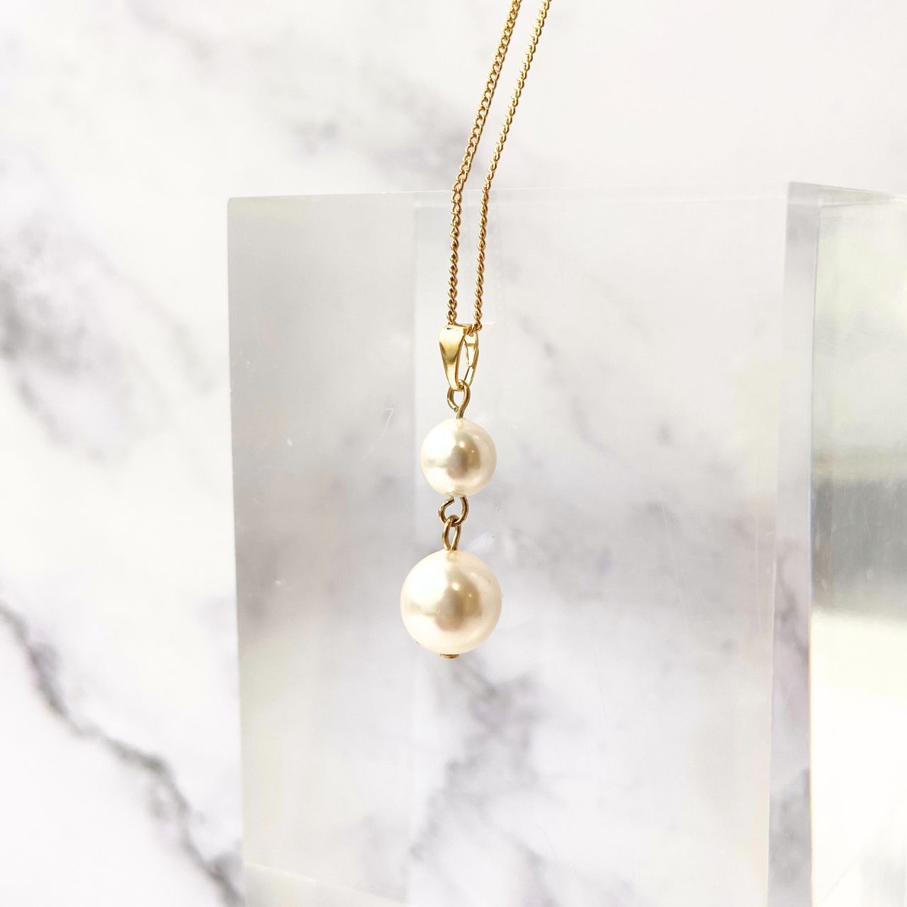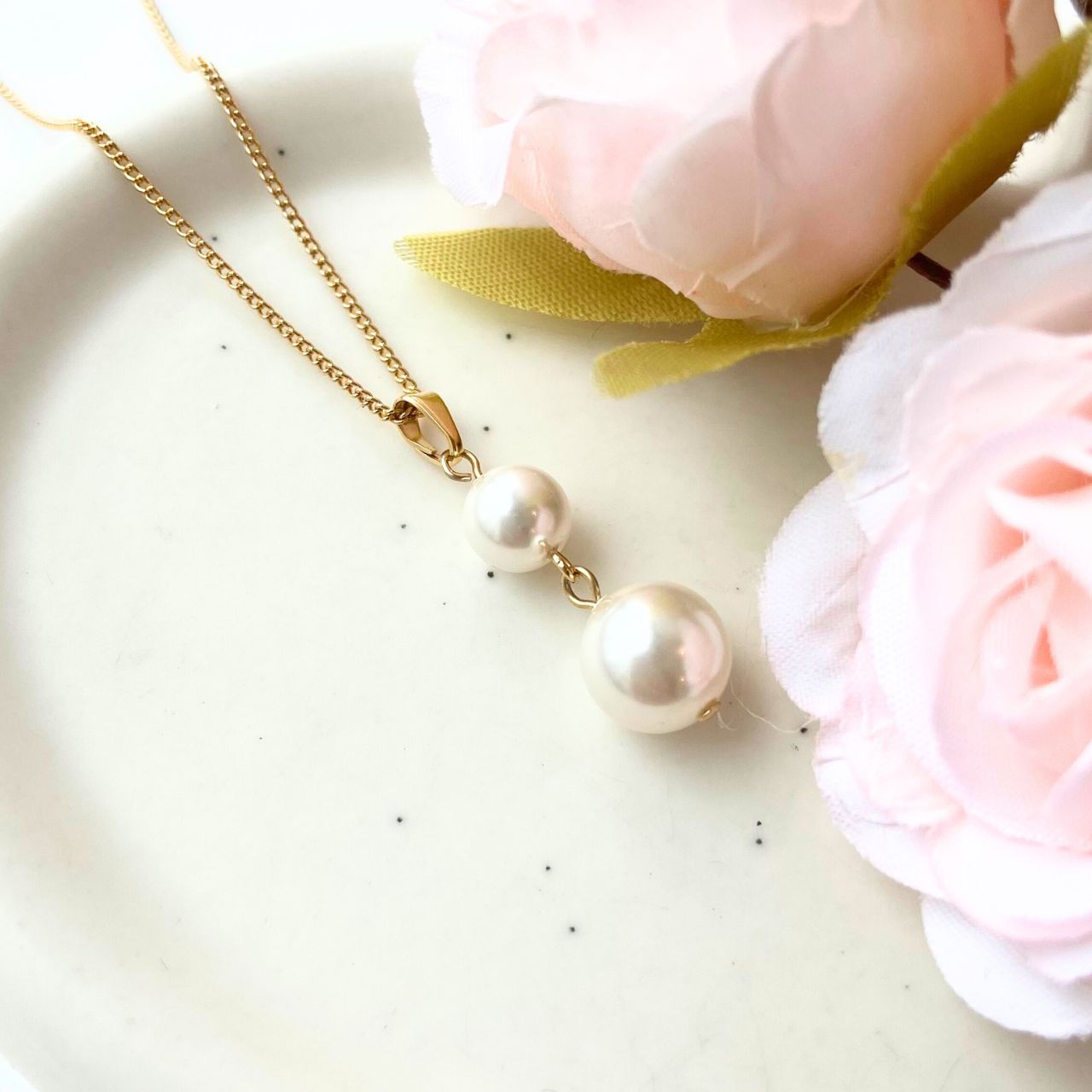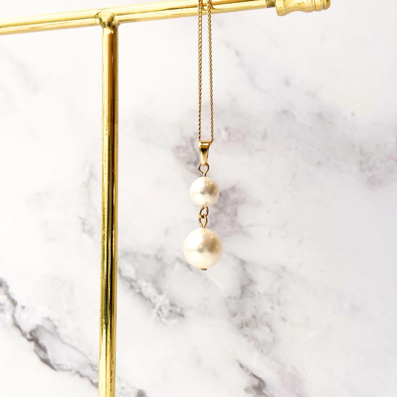 上品な光沢とシンプルな美しさを大切に仕立てた「2粒パールネックレス」です。