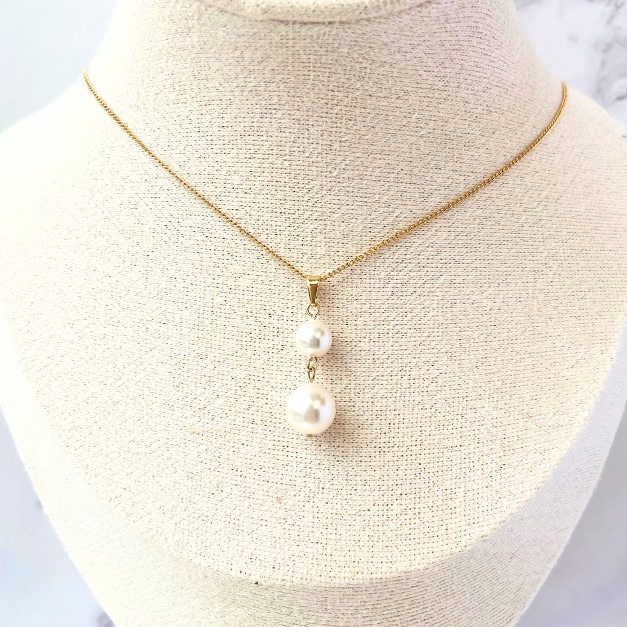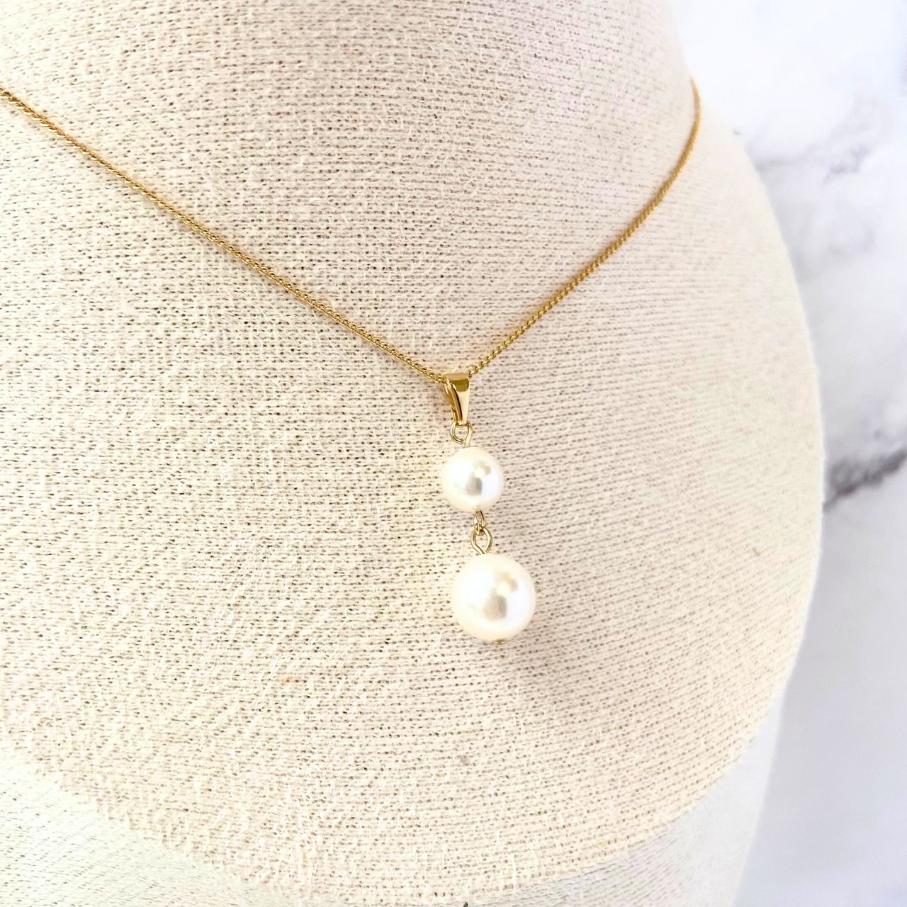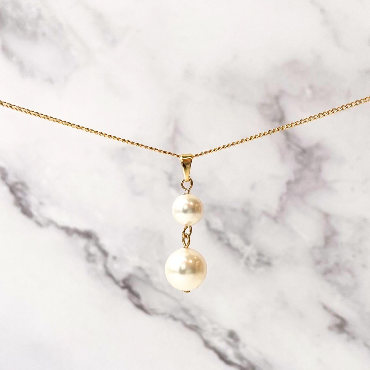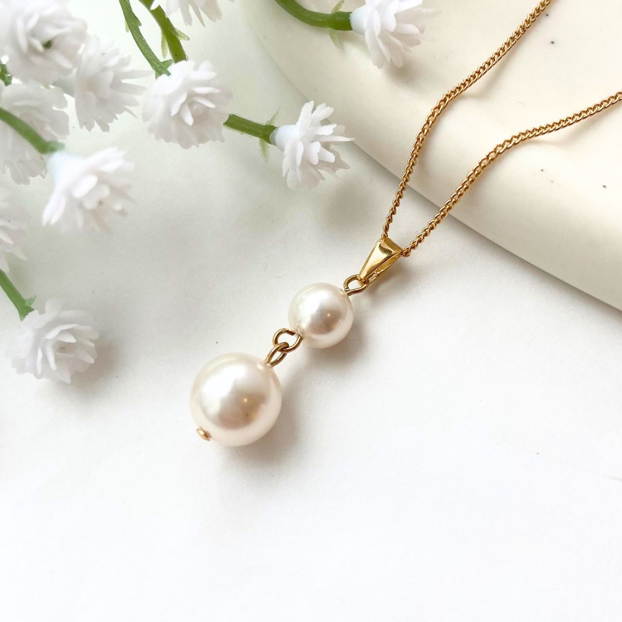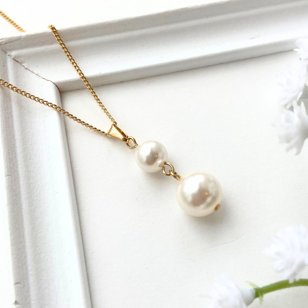 上品な光沢とシンプルな美しさを大切に仕立てた「2粒パールネックレス」です。