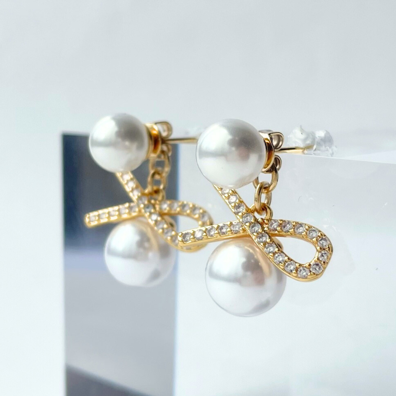 エレガントなパールとゴールドカラーのノット(結び目)が合わさった上品なデザインのピアスです。