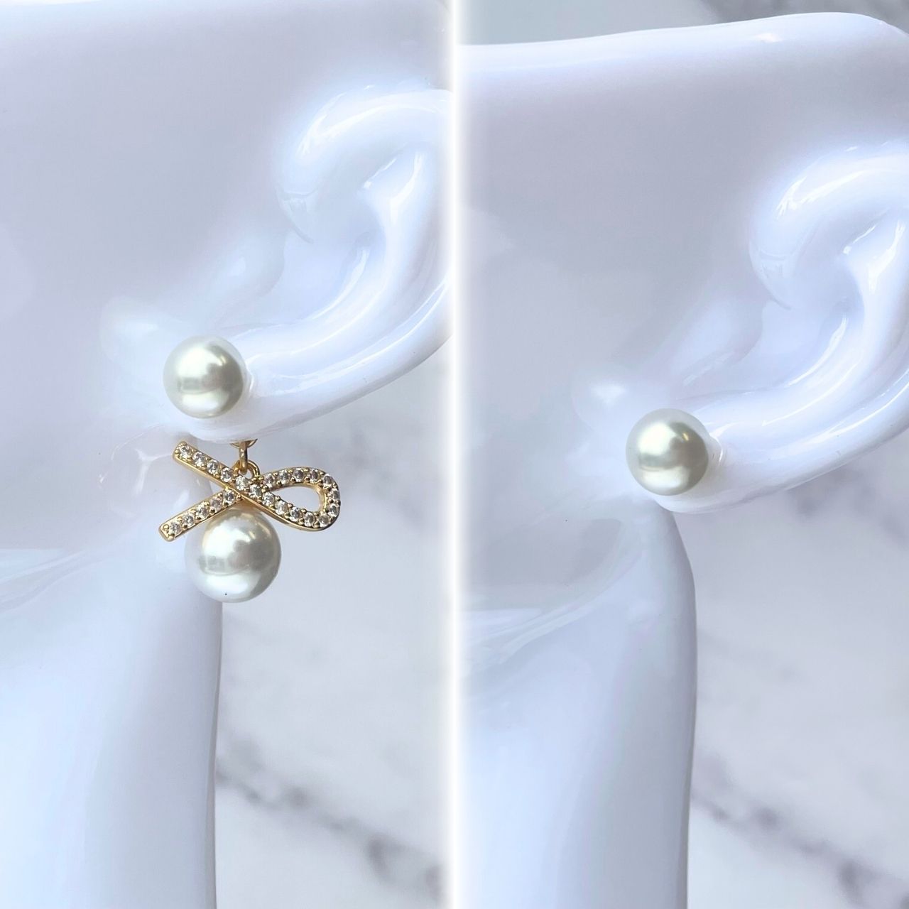 ノット部分は取り外しが可能な2wayデザインになっておりシンプルなパールピアスとしてもお楽しみいただけます。