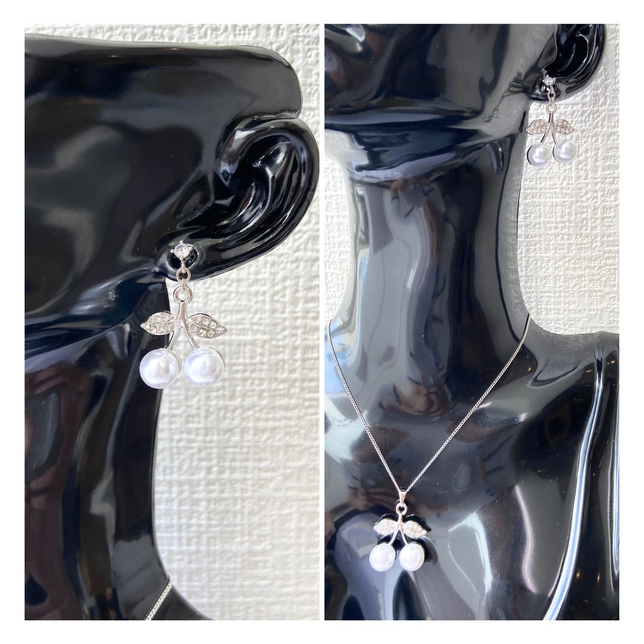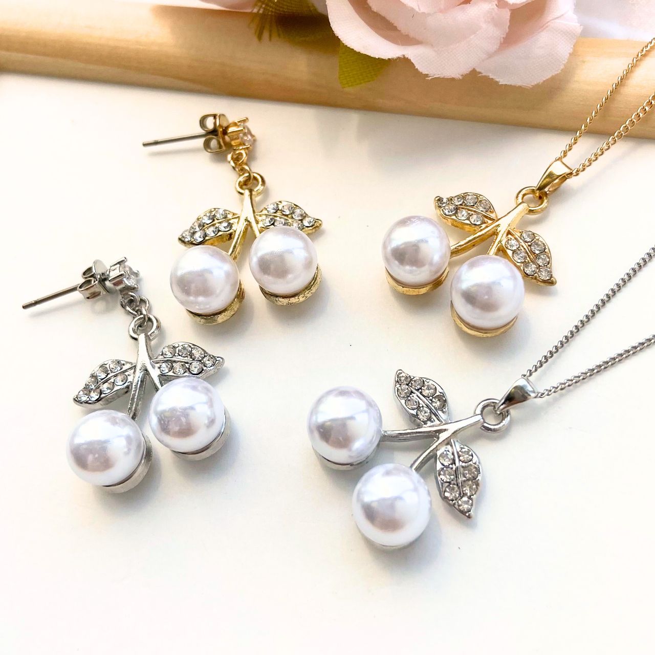 輝くチェリーのモチーフと艶やかなパールが調和し大人の女性にもぴったりな上品な仕上がり。
